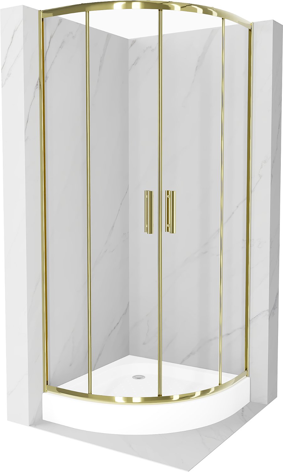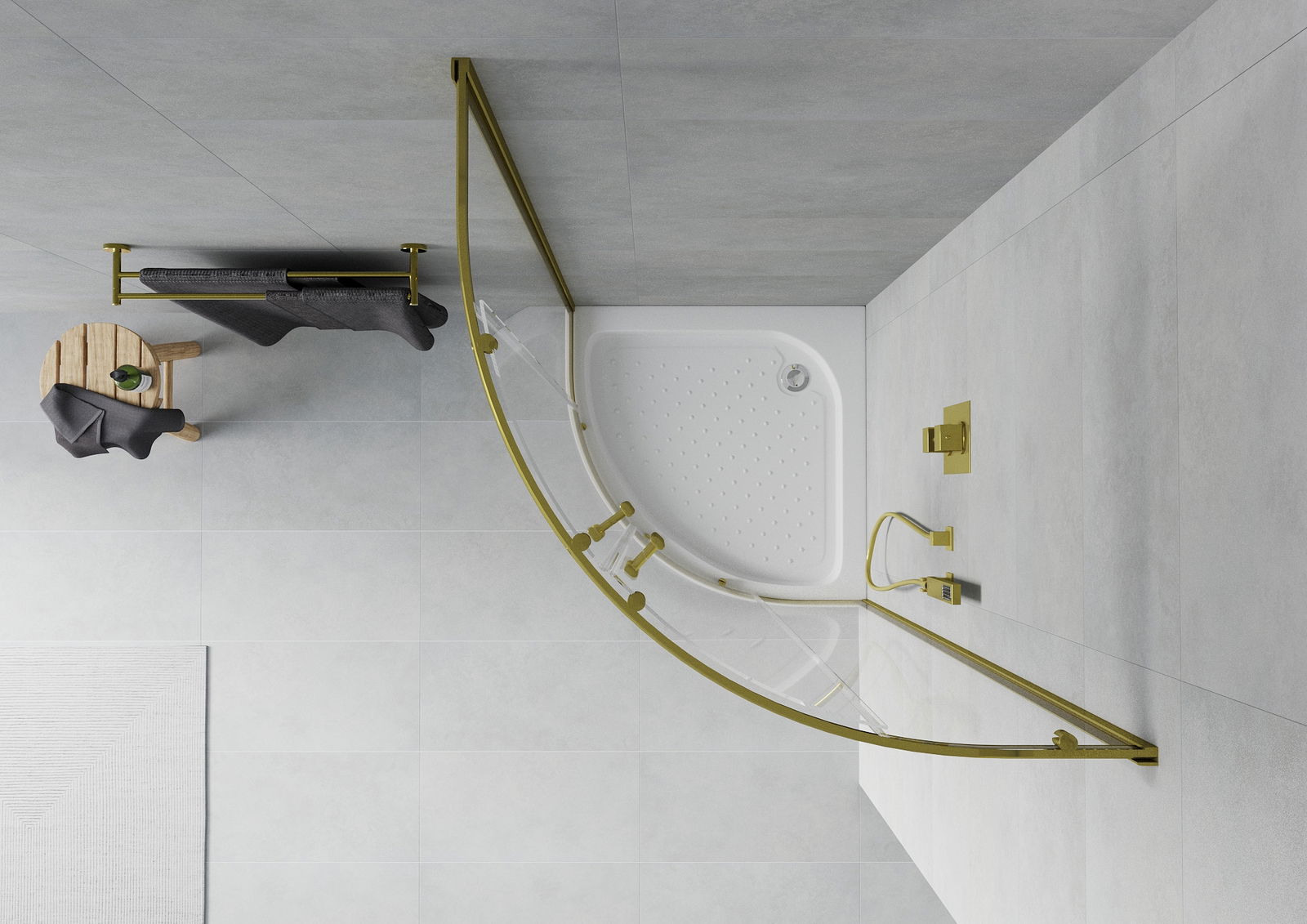 Mexen Rio semi-circular shower cabin 70 x 70 cm, transparent, gold + Rio shower tray, white - 863-070-070-50-00-4710