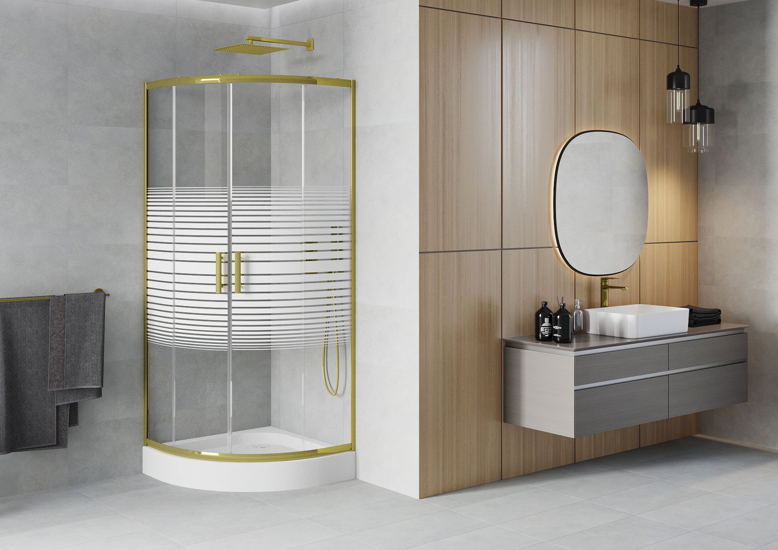 Mexen Rio semi-circular shower cabin 70 x 70 cm, white stripes, gold + shower tray, white - 863-070-070-50-20-4710