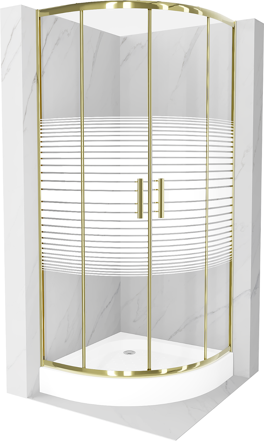 Mexen Rio semi-circular shower cabin 90 x 90 cm, white stripes, gold + tray, white - 863-090-090-50-20-4710