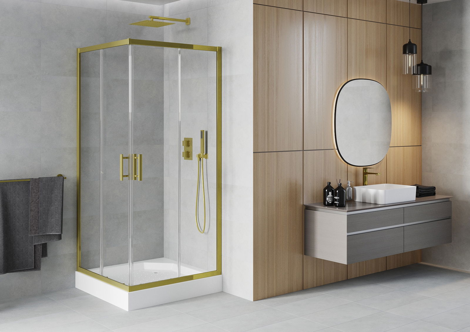 The handy and comfortable handle is made of durable and resistant metal. The fashionable shape, combined with a finish matching the color of the profiles, gives the whole a modern and stylish look, emphasizing the aesthetics of any bathroom.