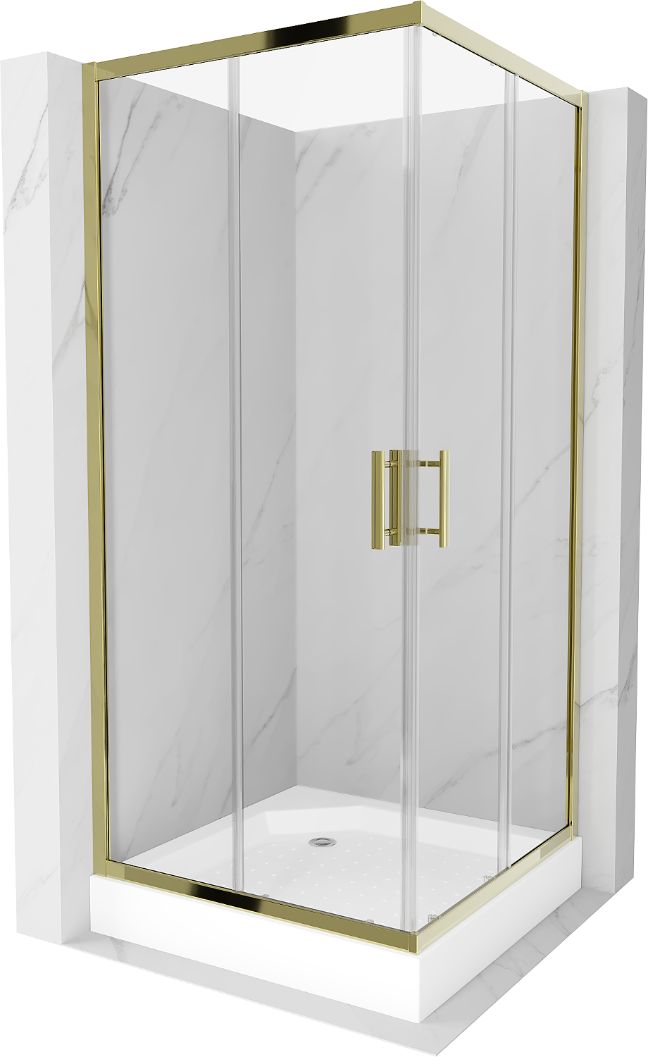 Mexen Rio square shower cabin 90 x 90 cm, transparent, gold + Rio shower tray, white - 860-090-090-50-00-4510