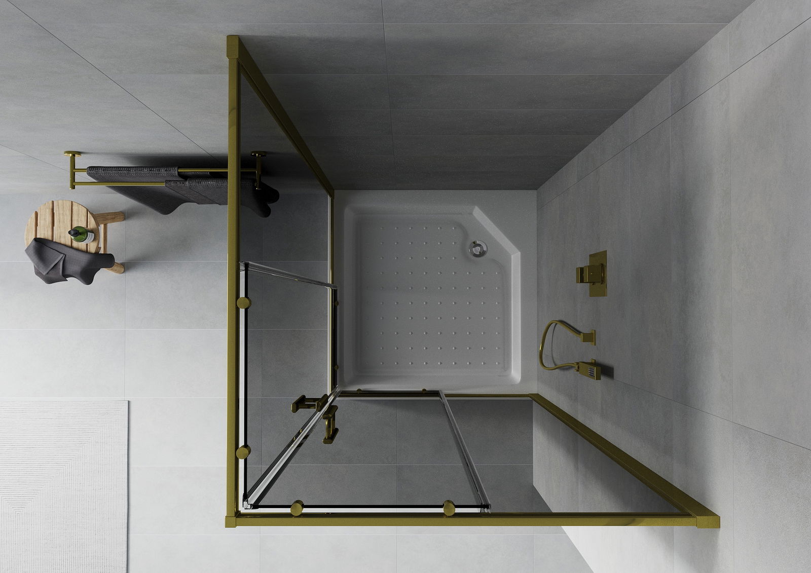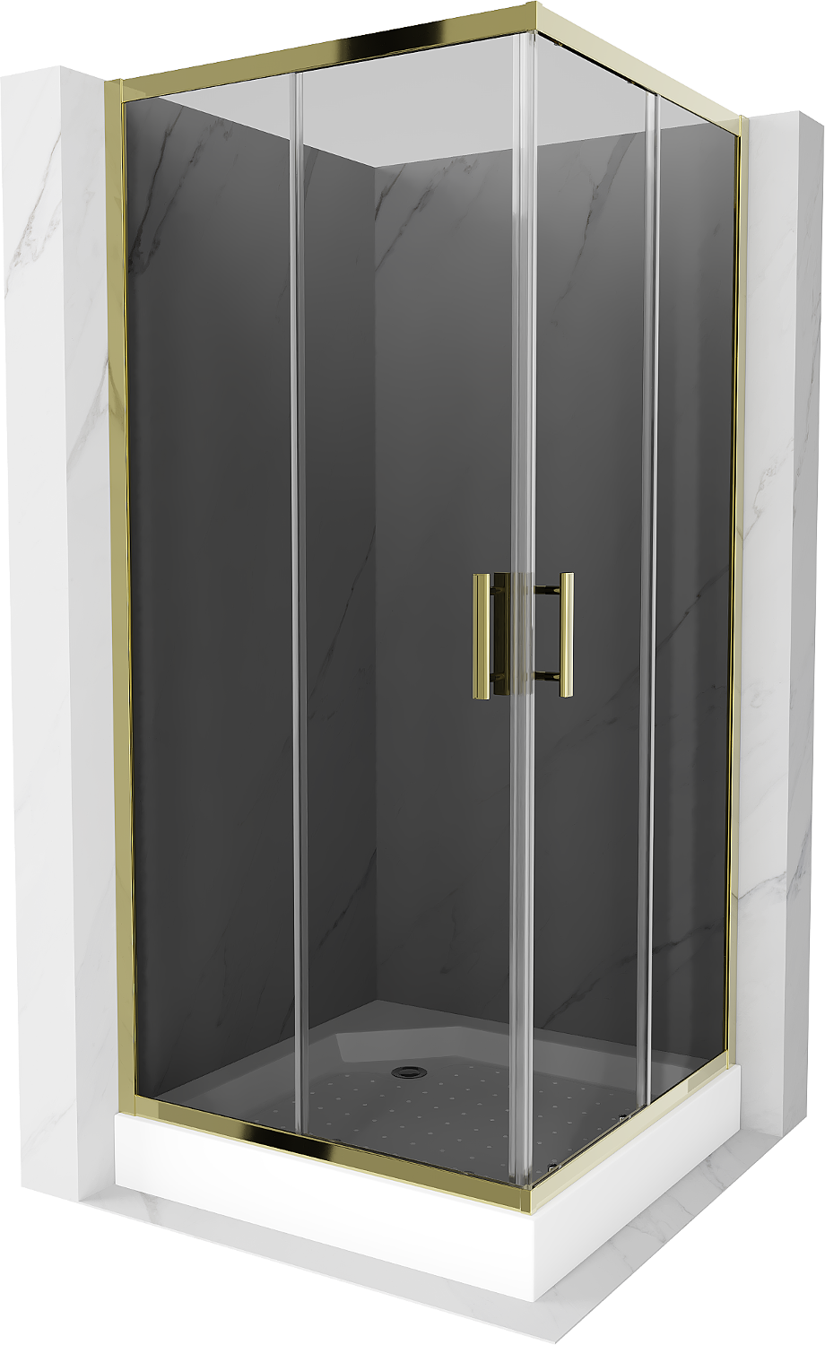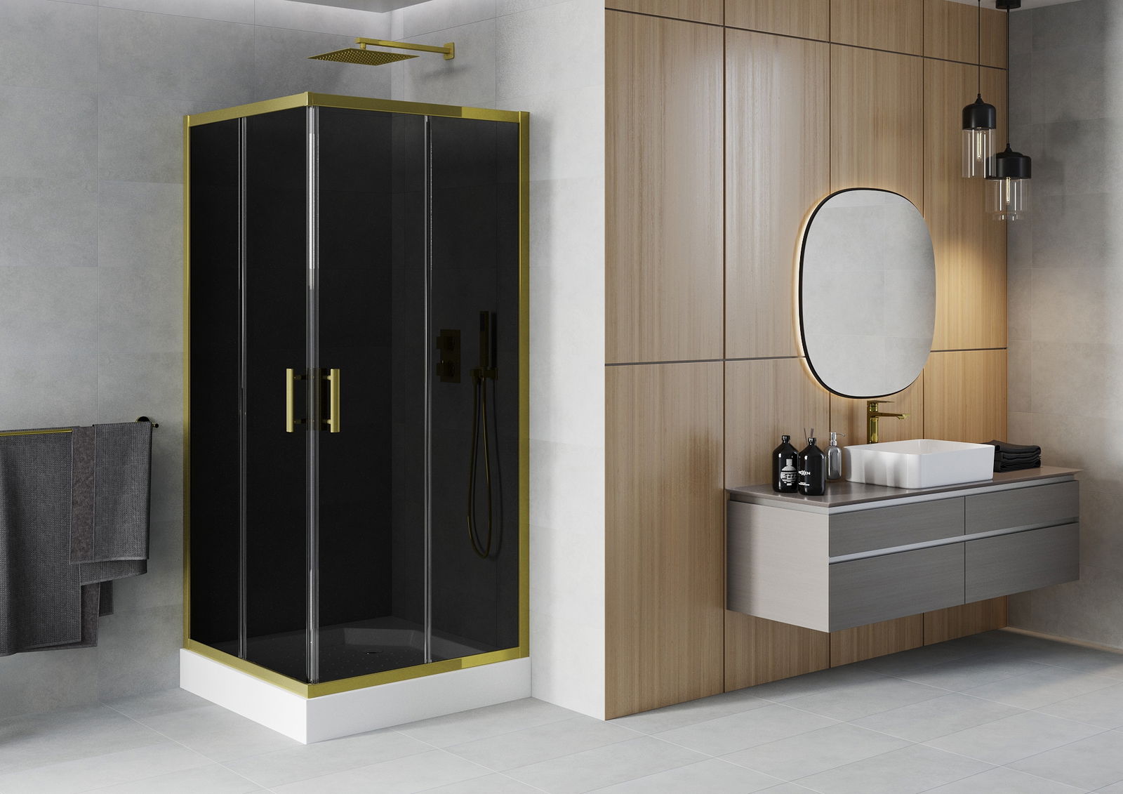 Mexen Rio square shower cabin 90 x 90 cm, graphite, gold + Rio shower tray, white - 860-090-090-50-40-4510
