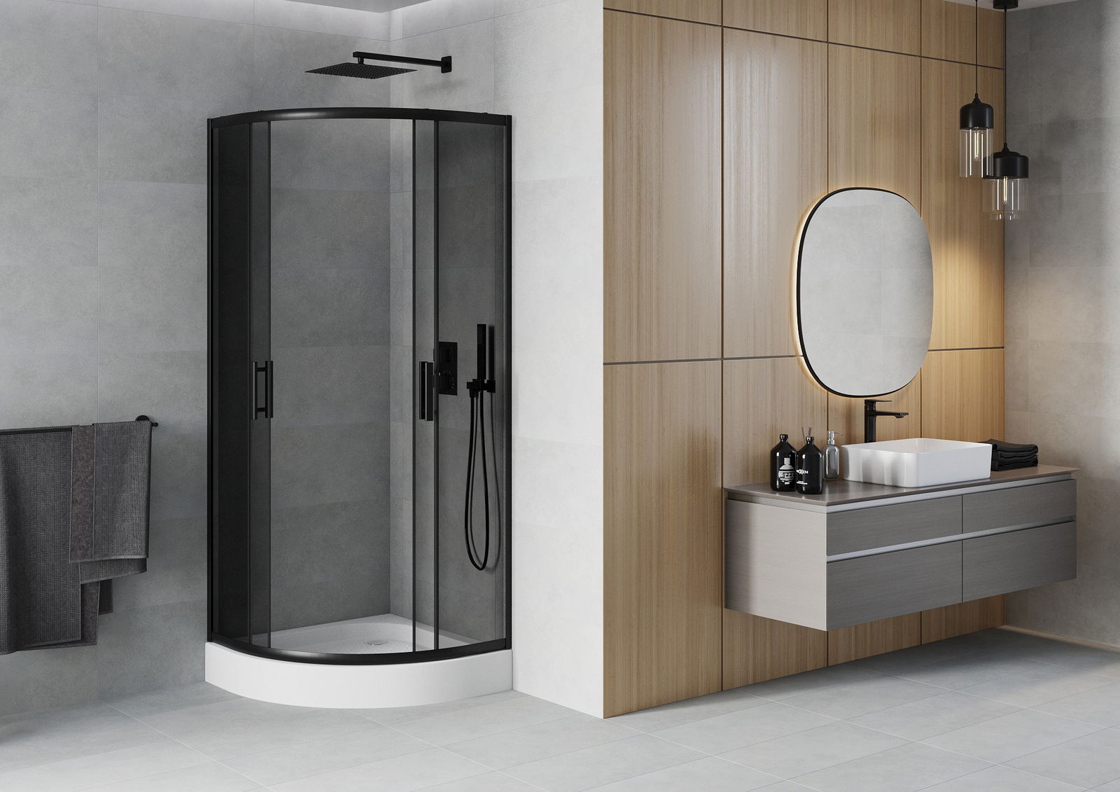 The handy and comfortable handle is made of durable and resistant metal. The fashionable shape, combined with a finish matching the color of the profiles, gives the whole a modern and stylish look, emphasizing the aesthetics of any bathroom.
