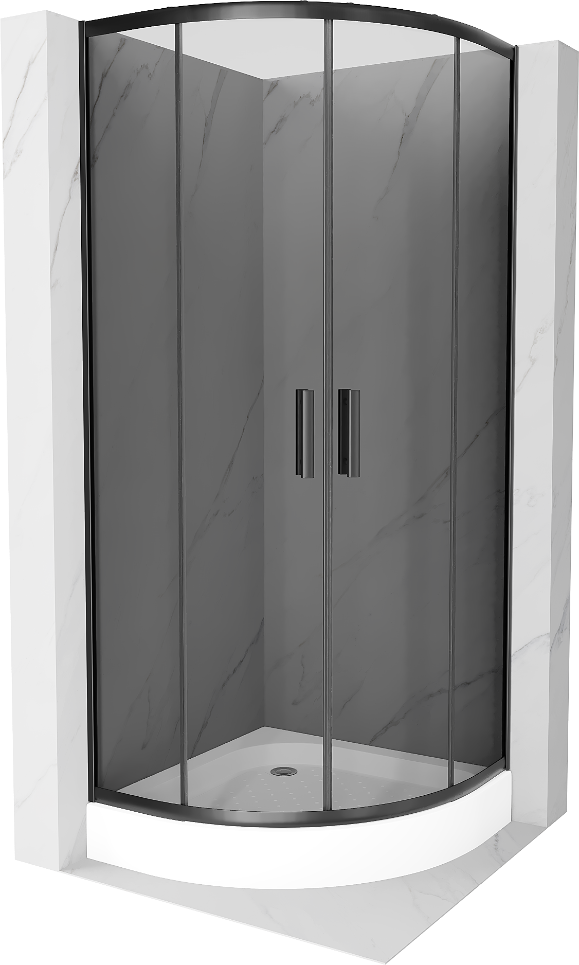 Mexen Rio semicircular shower enclosure 90 x 90 cm, graphite, black + Rio shower tray, white - 863-090-090-70-40-4710