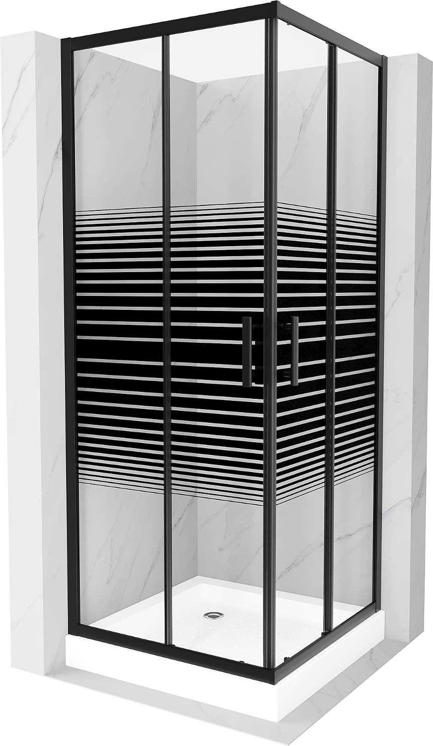 Mexen Rio square shower enclosure 80 x 80 cm, black stripes, black + shower tray, white - 860-080-080-70-20-4510