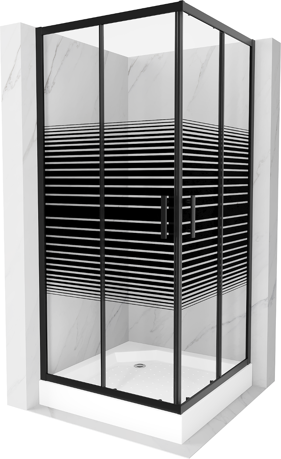 Mexen Rio square shower cabin 90 x 90 cm, black stripes, black + tray, white - 860-090-090-70-20-4510