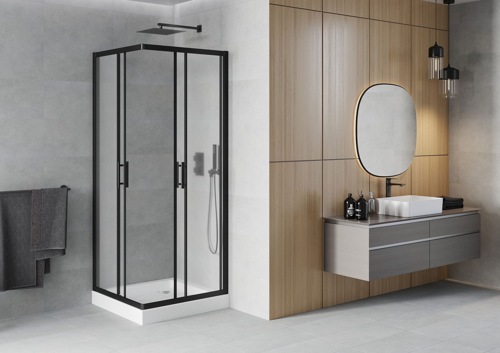 Sliding doors move around special guides and do not require additional space to open them, so they will work in smaller bathrooms. Thanks to double rollers made of durable plastic, their movement is fluid.