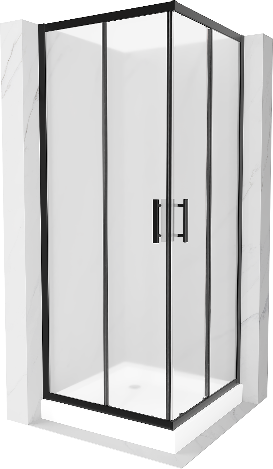 Mexen Rio Square Shower Enclosure 80 x 80 cm, Frosted, Black + Rio Tray, White - 860-080-080-70-30-4510