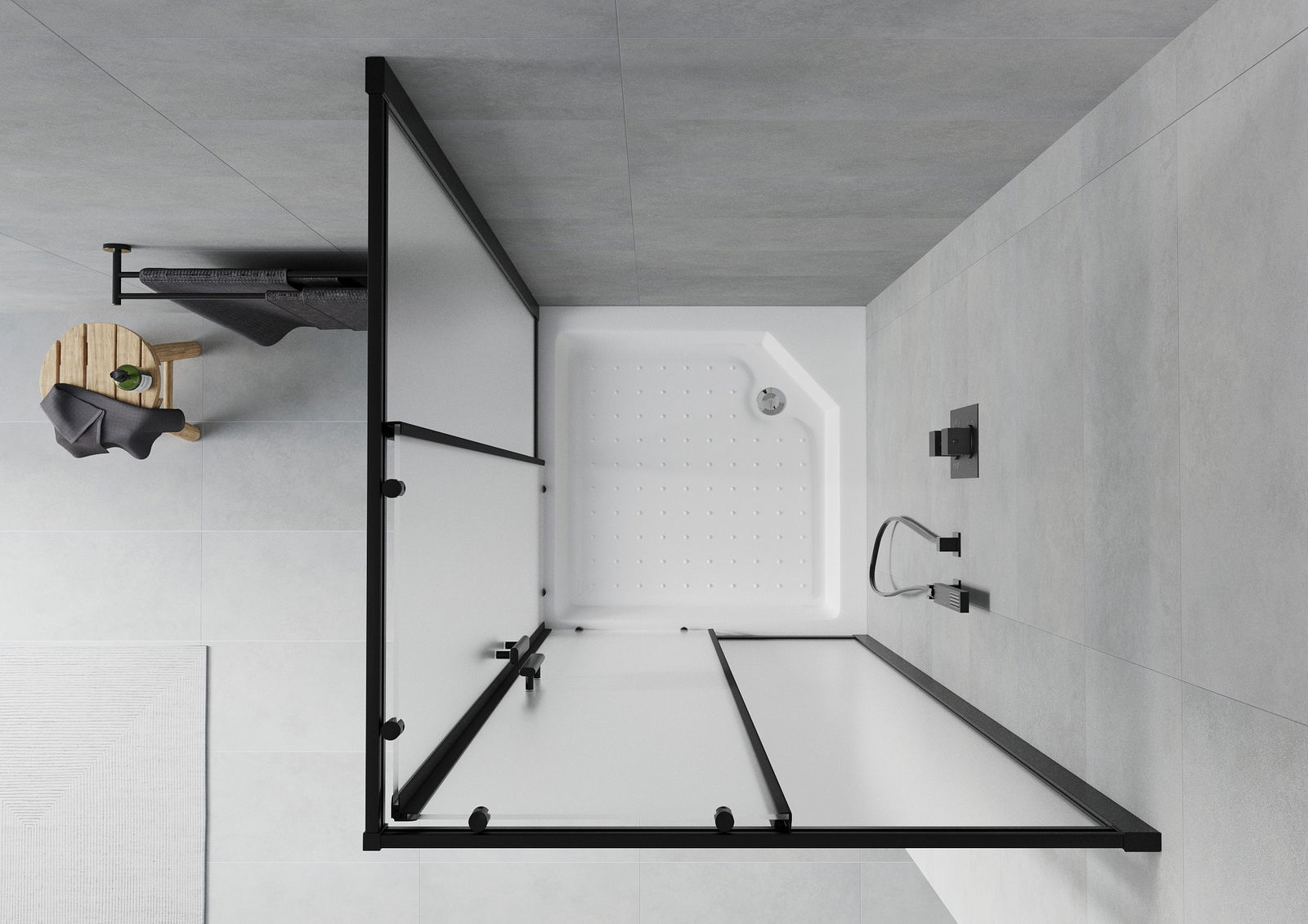 Mexen Rio Square Shower Enclosure 90 x 90 cm, Frosted, Black + Rio Shower Tray, White - 860-090-090-70-30-4510