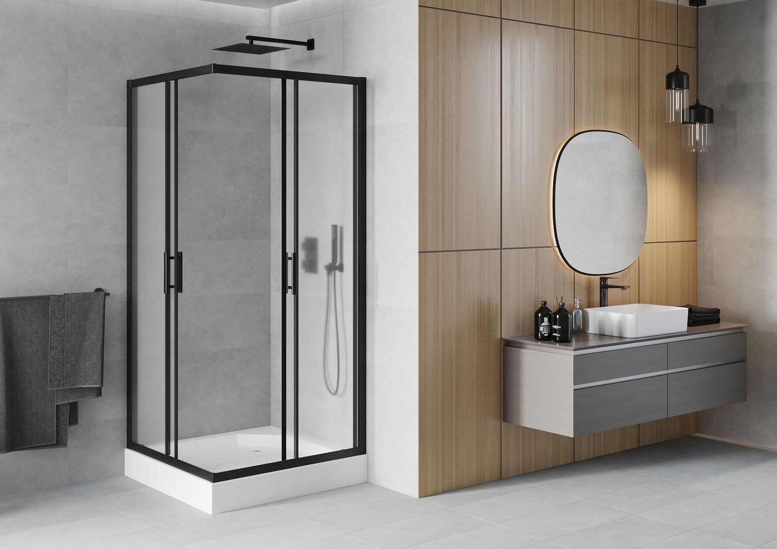 Sliding doors move around special guides and do not require additional space to open them, so they will work in smaller bathrooms. Thanks to double rollers made of durable plastic, their movement is fluid.