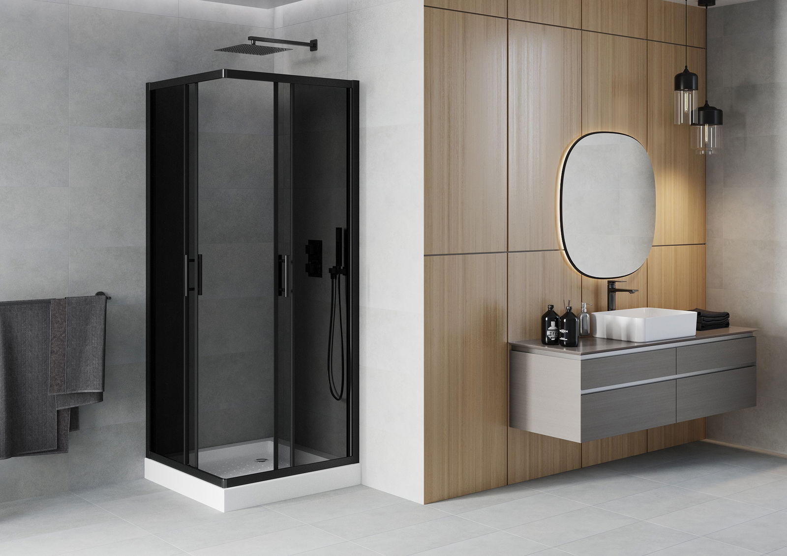 Sliding doors move around special guides and do not require additional space to open them, so they will work in smaller bathrooms. Thanks to double rollers made of durable plastic, their movement is fluid.