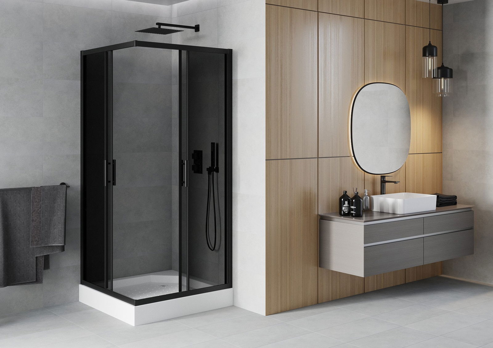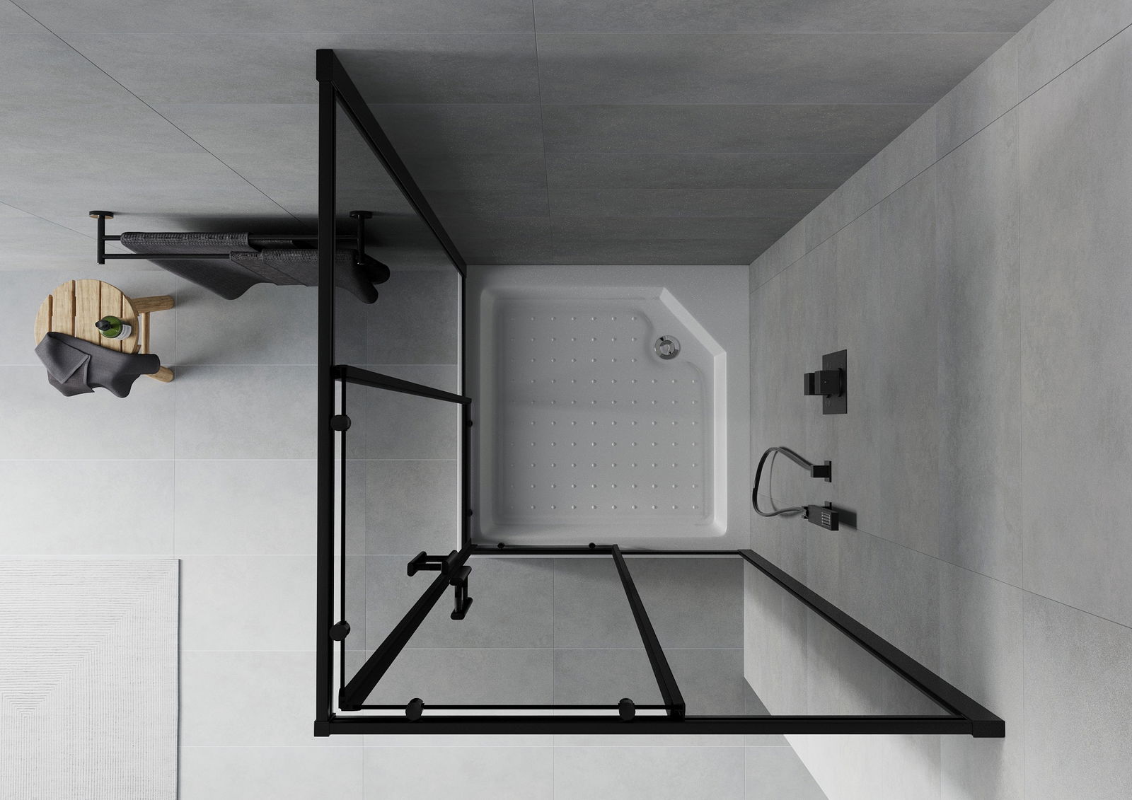 The handy and comfortable handle is made of durable and resistant metal. The fashionable shape, combined with a finish matching the color of the profiles, gives the whole a modern and stylish look, emphasizing the aesthetics of any bathroom.