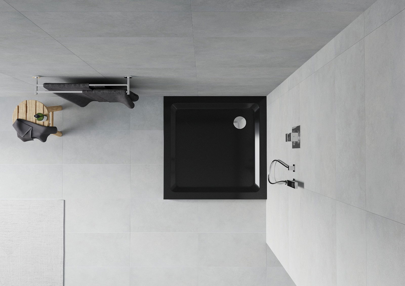Mexen Flat square shower tray slim 70 x 70 cm, black, chrome siphon - 40707070