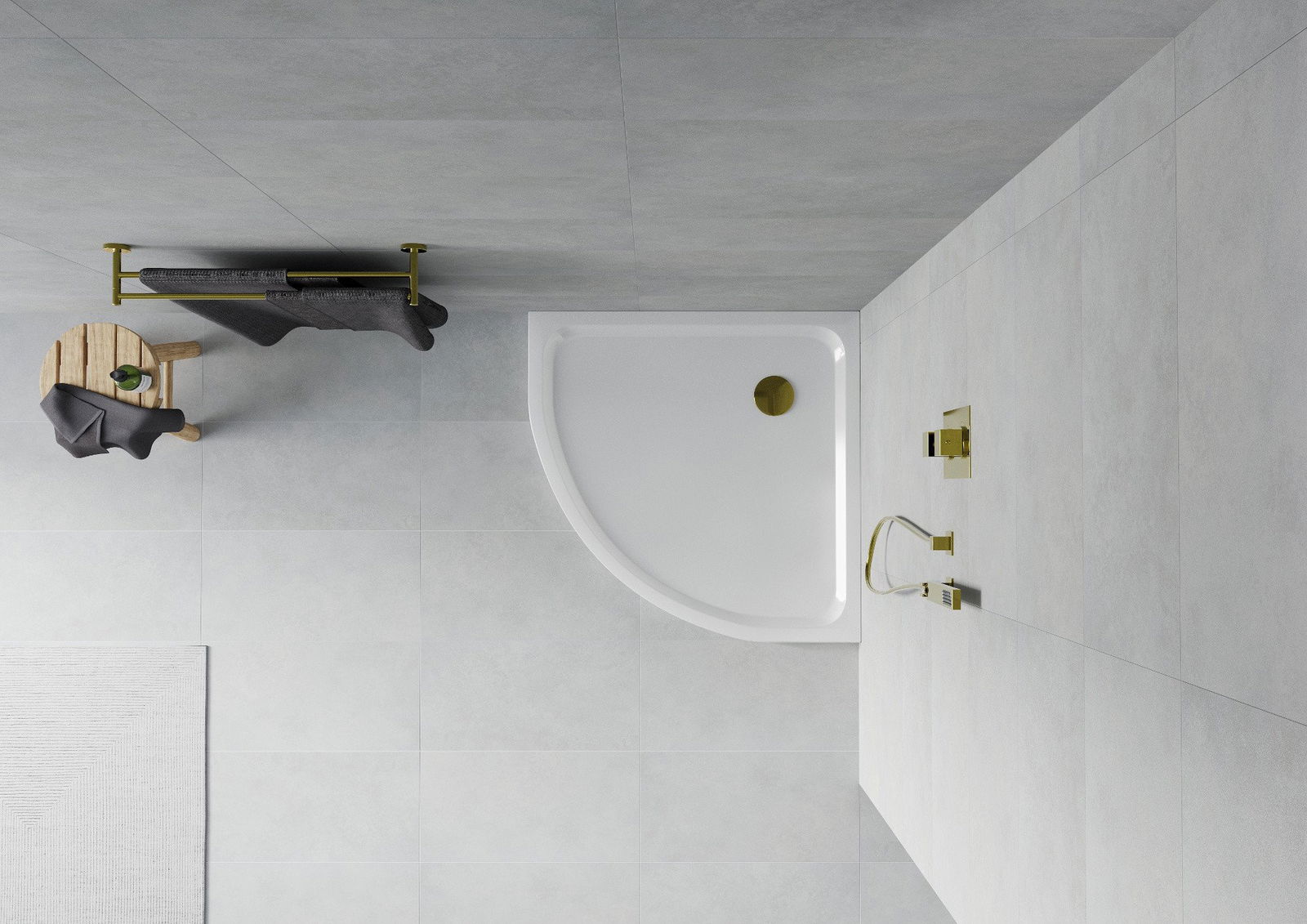 Mexen Flat is a quadrant shower tray with dimensions of 100 x 100 cm, made from sanitary acrylic, ensuring durability and ease of maintenance. Its modern white colour and glossy surface add elegance to any bathroom. The package includes a siphon with easy top-clean cleaning and a gold-finished cap, adding style. With a depth of 5 cm and a drain diameter of 90 mm, the shower tray efficiently fulfills its practical functions.