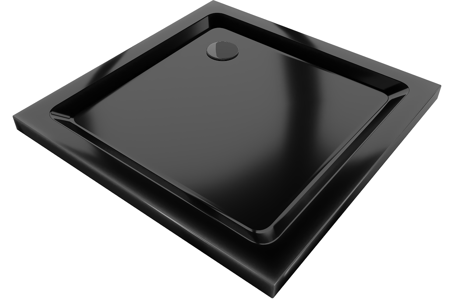 Mexen Flat square slim shower tray 70 x 70 cm, black, black siphon - 40707070B