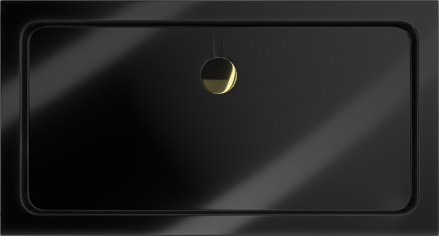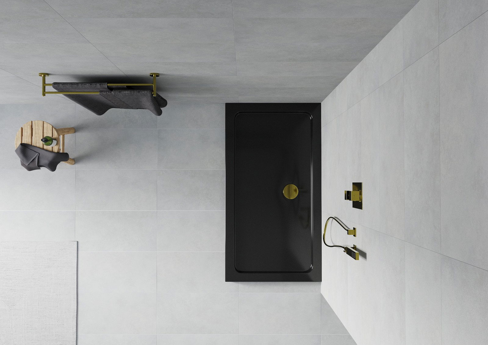 Mexen Flat rectangular shower tray slim 140 x 70 cm, black, siphon gold - 40707014G