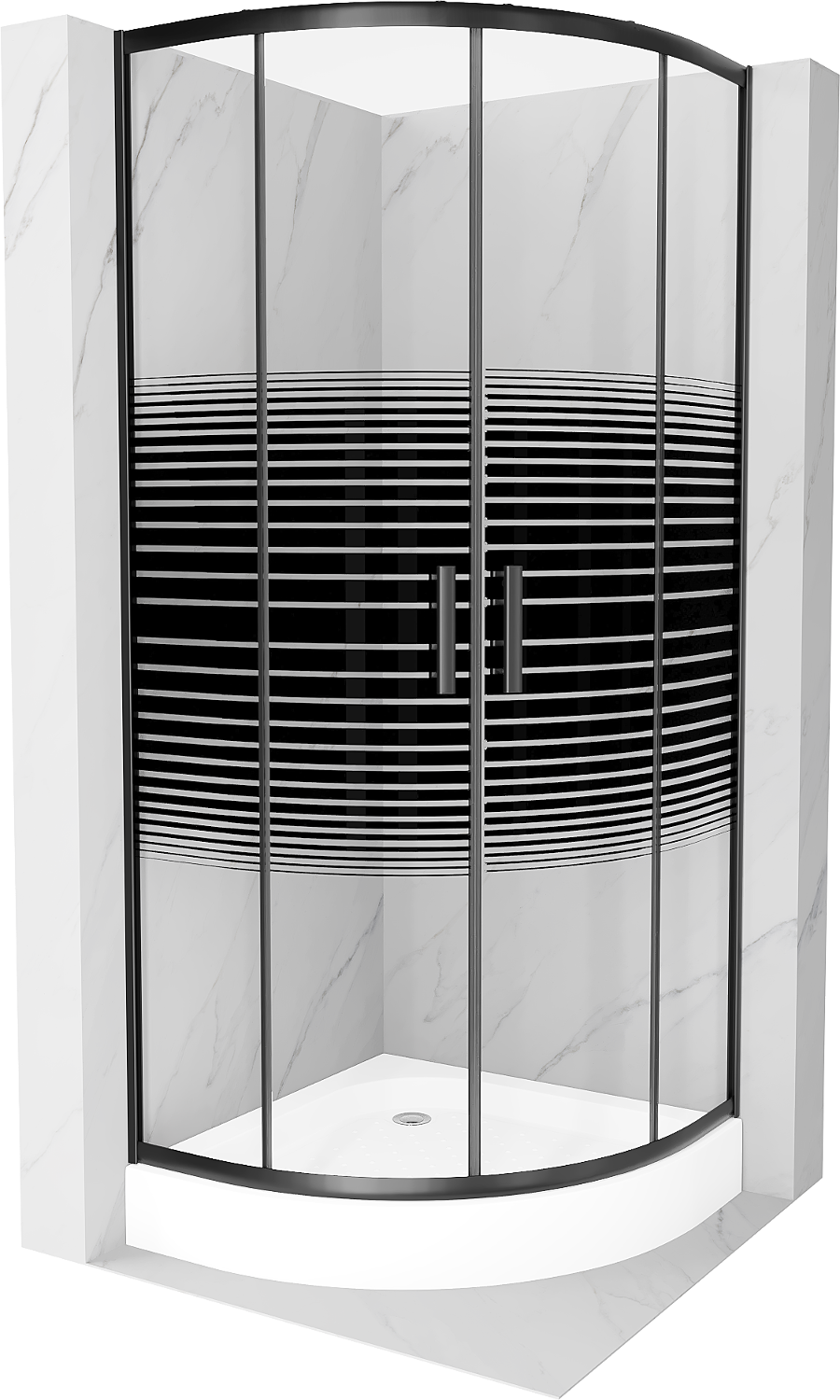 Mexen Rio Semi-circular shower cabin 80 x 80 cm, black stripes, black + tray, white - 863-080-080-70-20-4710