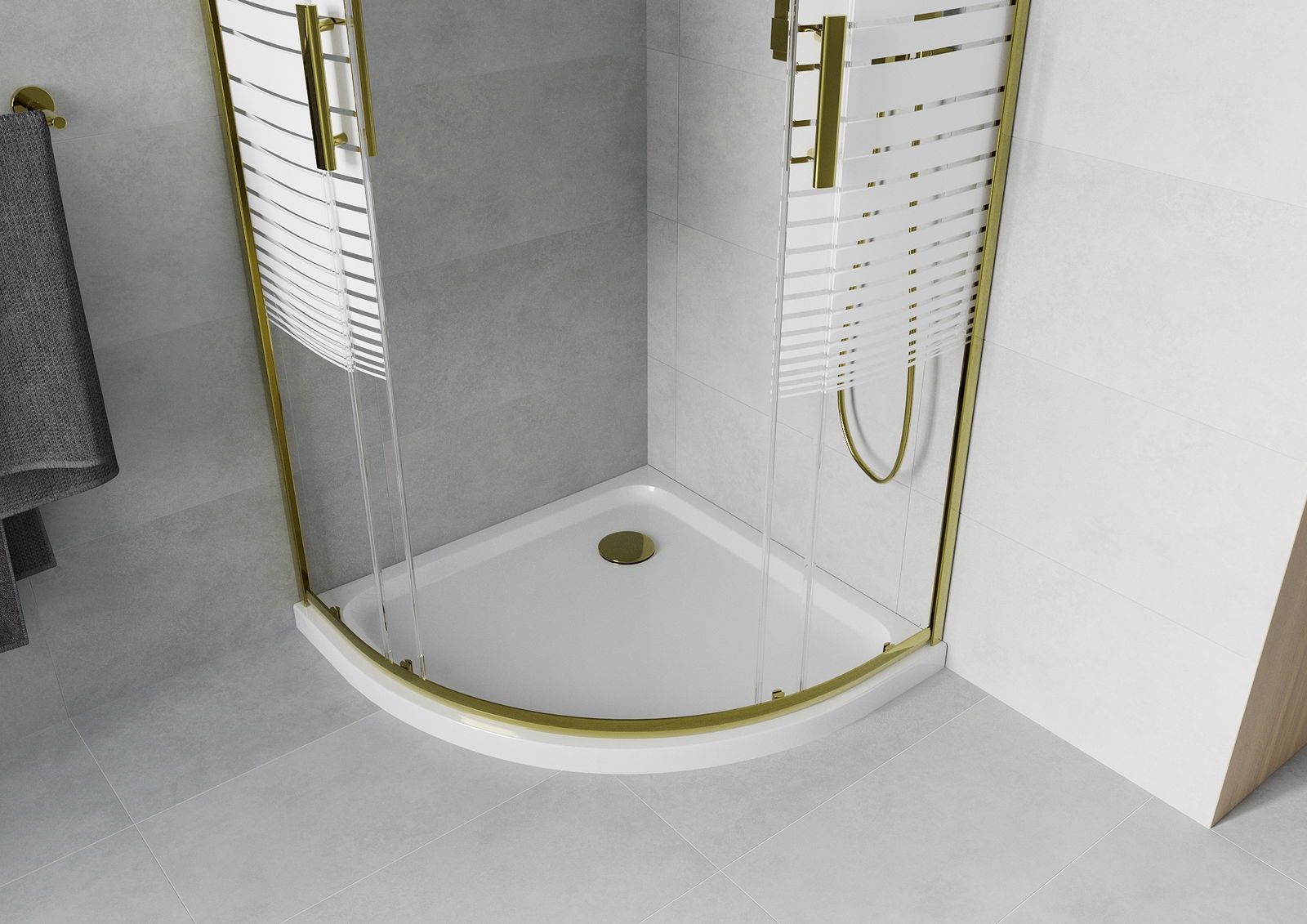 Mexen Rio semi-circular shower cabin 80 x 80 cm, white stripes, gold + Flat tray, white - 863-080-080-50-20-4110G