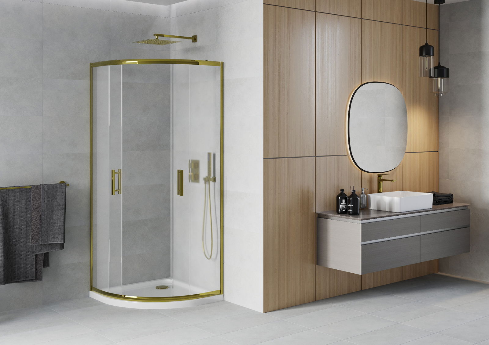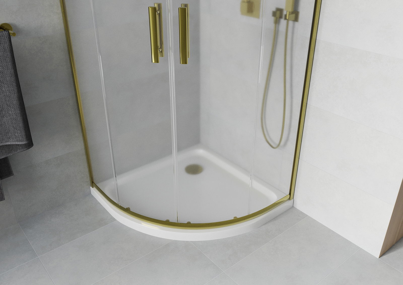 Mexen Rio semi-circular shower cabin 90 x 90 cm, frost, gold + Flat tray, white - 863-090-090-50-30-4110G