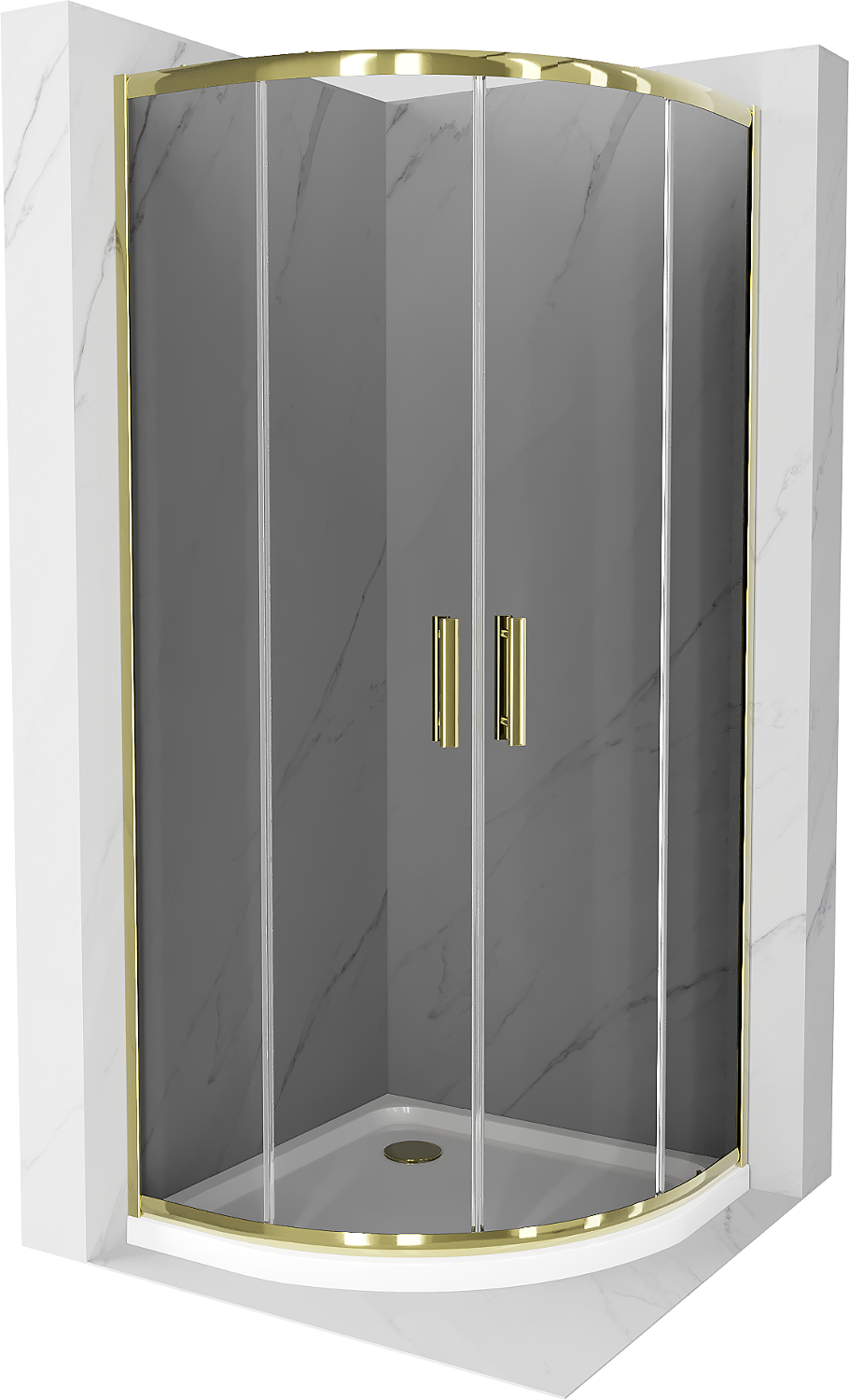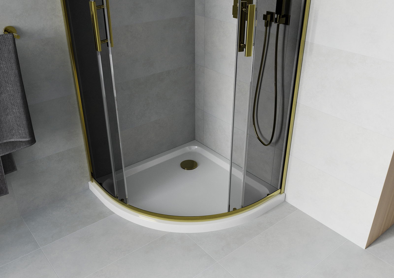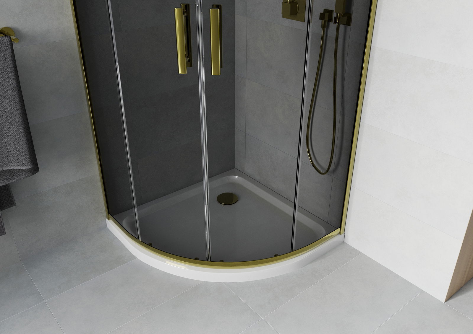 Mexen Rio semi-circular shower cabin 90 x 90 cm, graphite, gold + Flat shower tray, white - 863-090-090-50-40-4110G