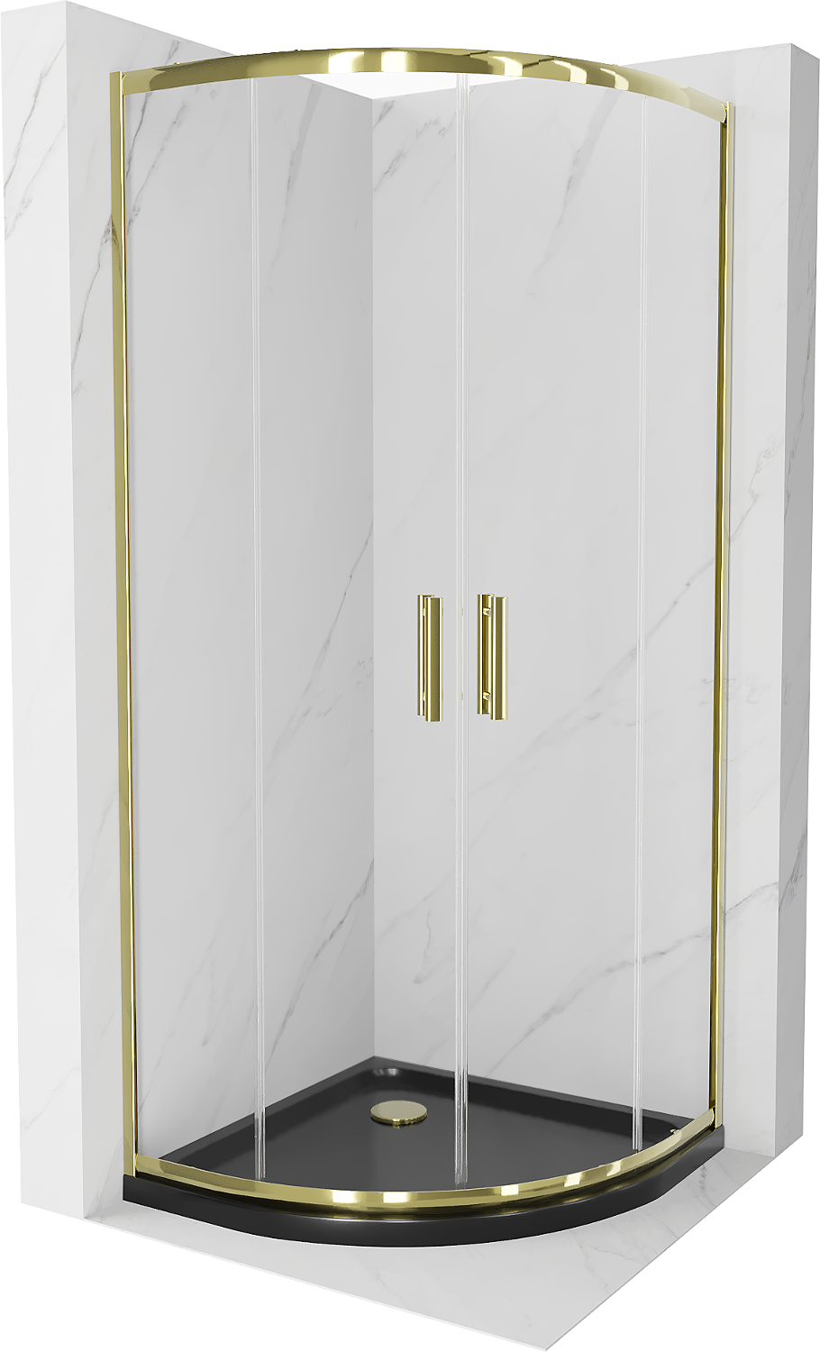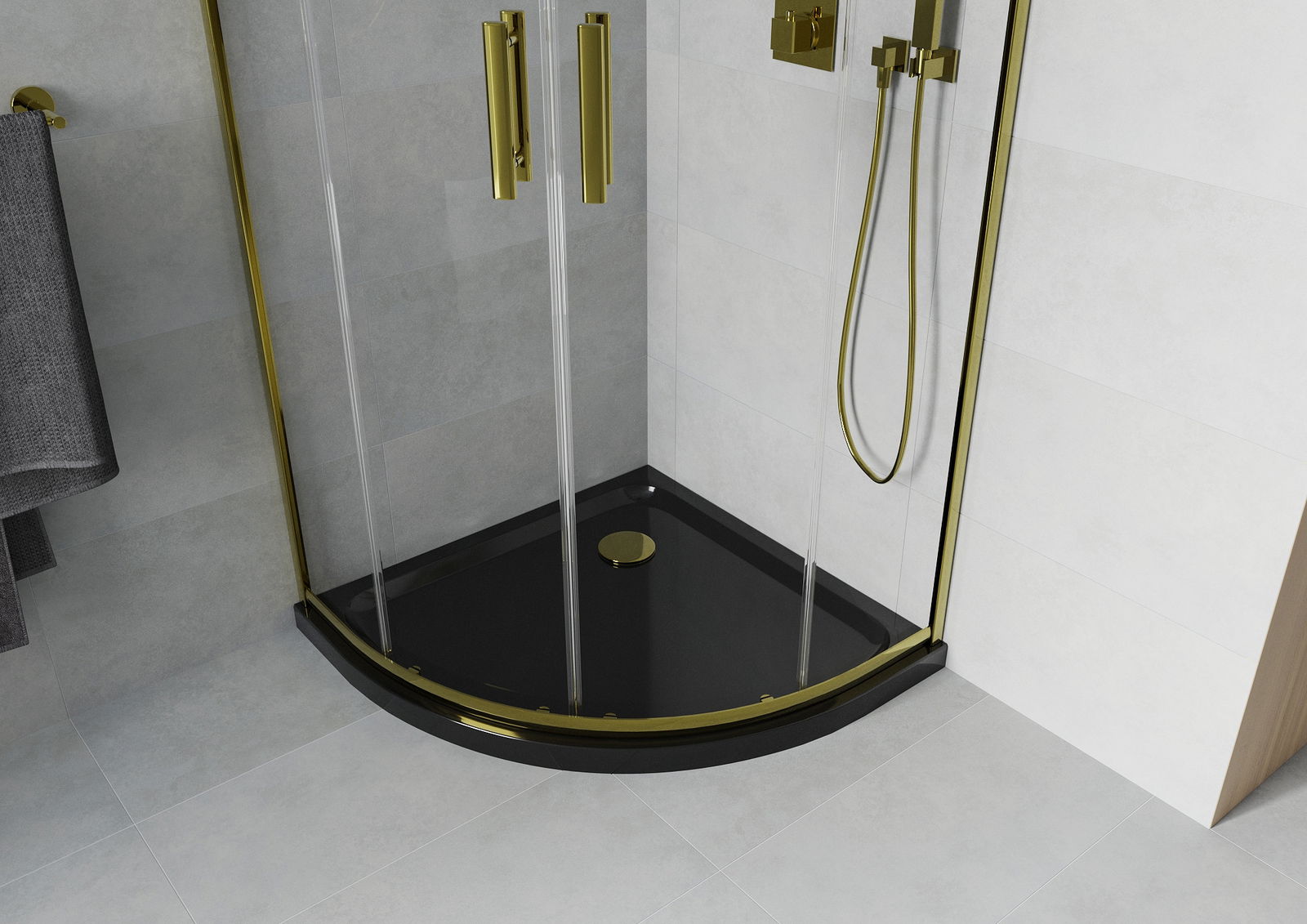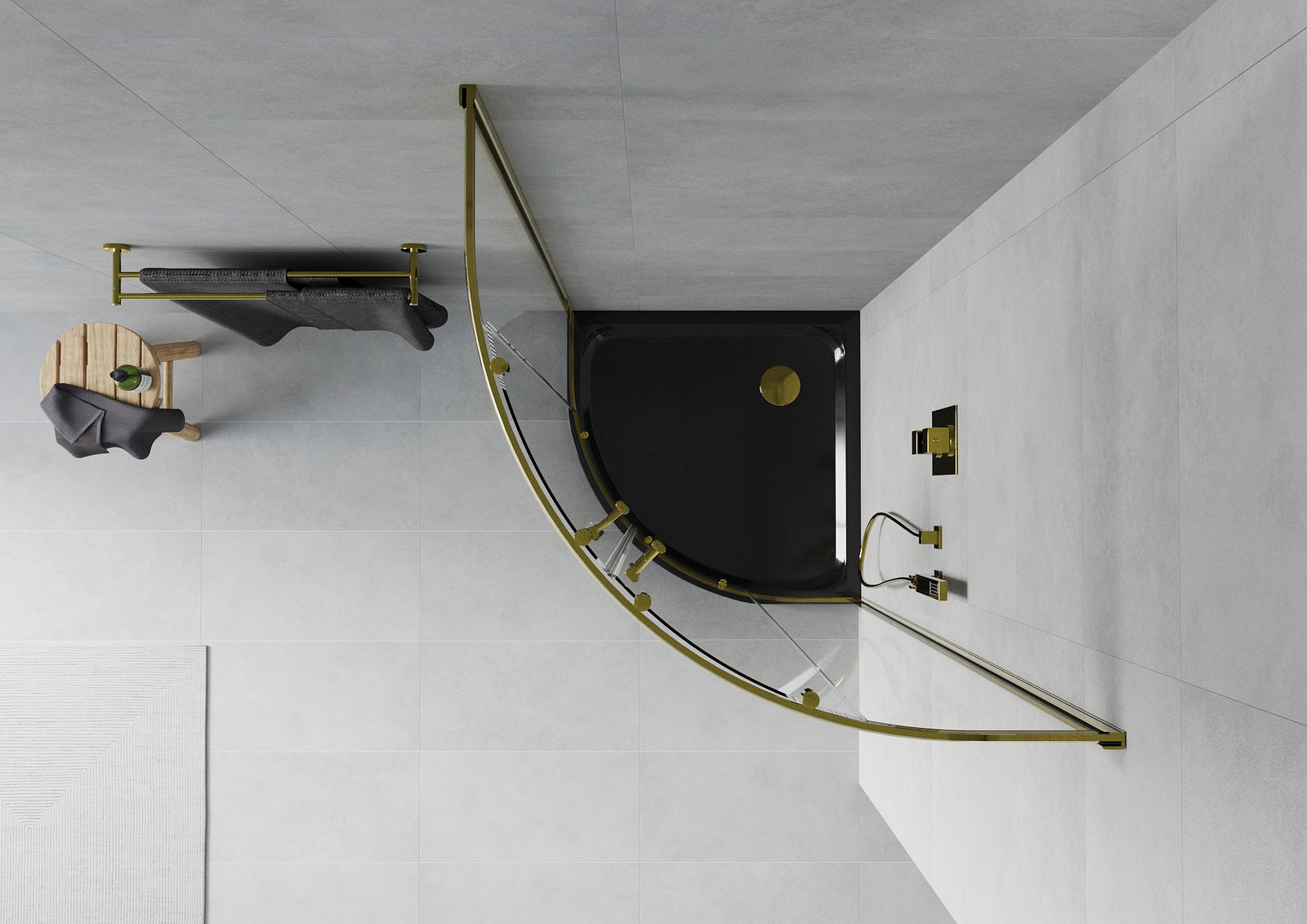 Mexen Rio semi-circular shower enclosure 90 x 90 cm, transparent, gold + Flat tray, black - 863-090-090-50-00-4170G