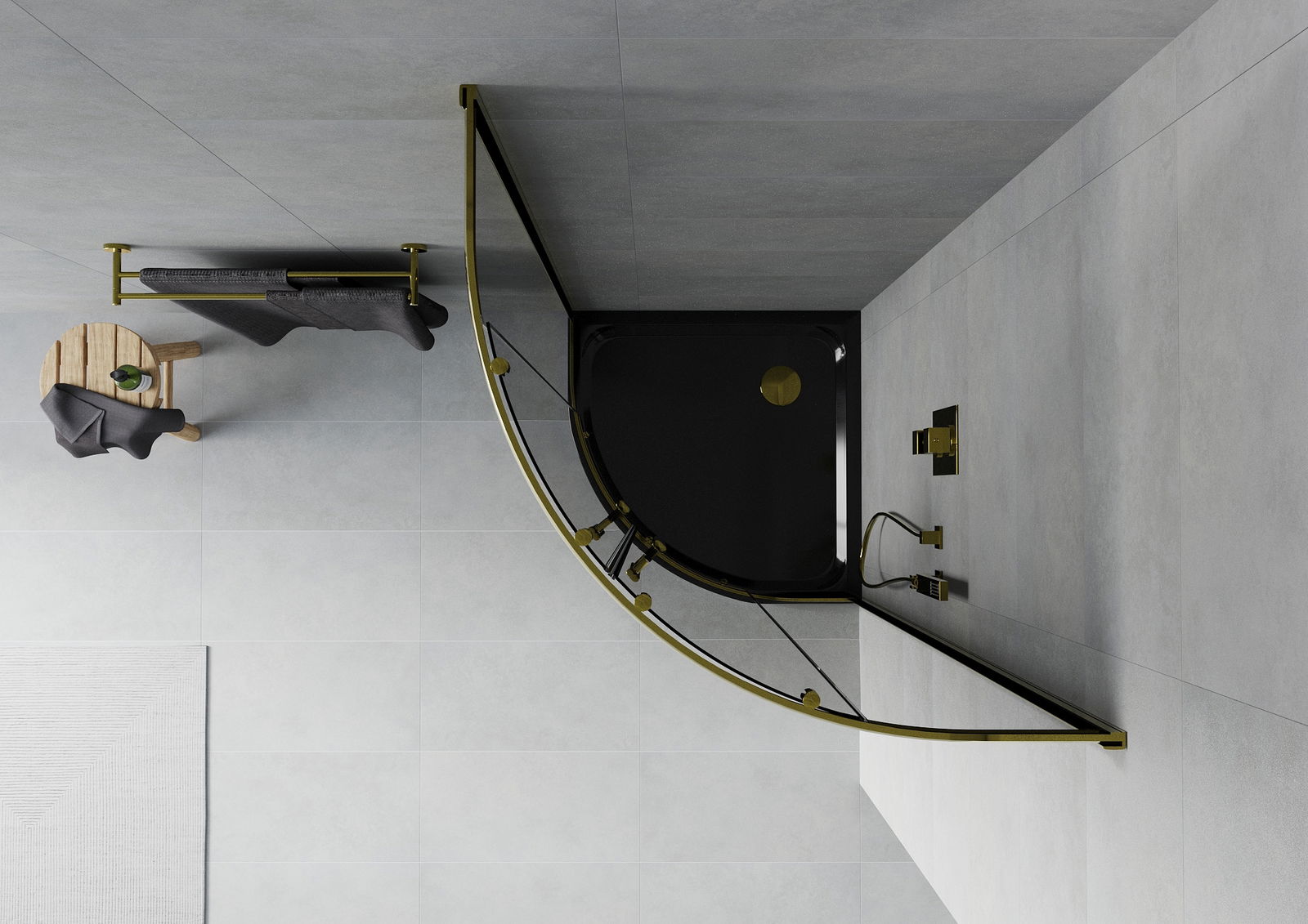 Mexen Rio Semi-Circular Shower Cabin 80 x 80 cm, Graphite, Gold + Flat Tray, Black - 863-080-080-50-40-4170G