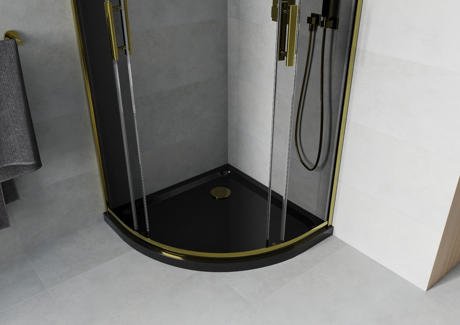 Mexen Rio semi-circular shower cabin 90 x 90 cm, graphite, gold + Flat tray, black - 863-090-090-50-40-4170G