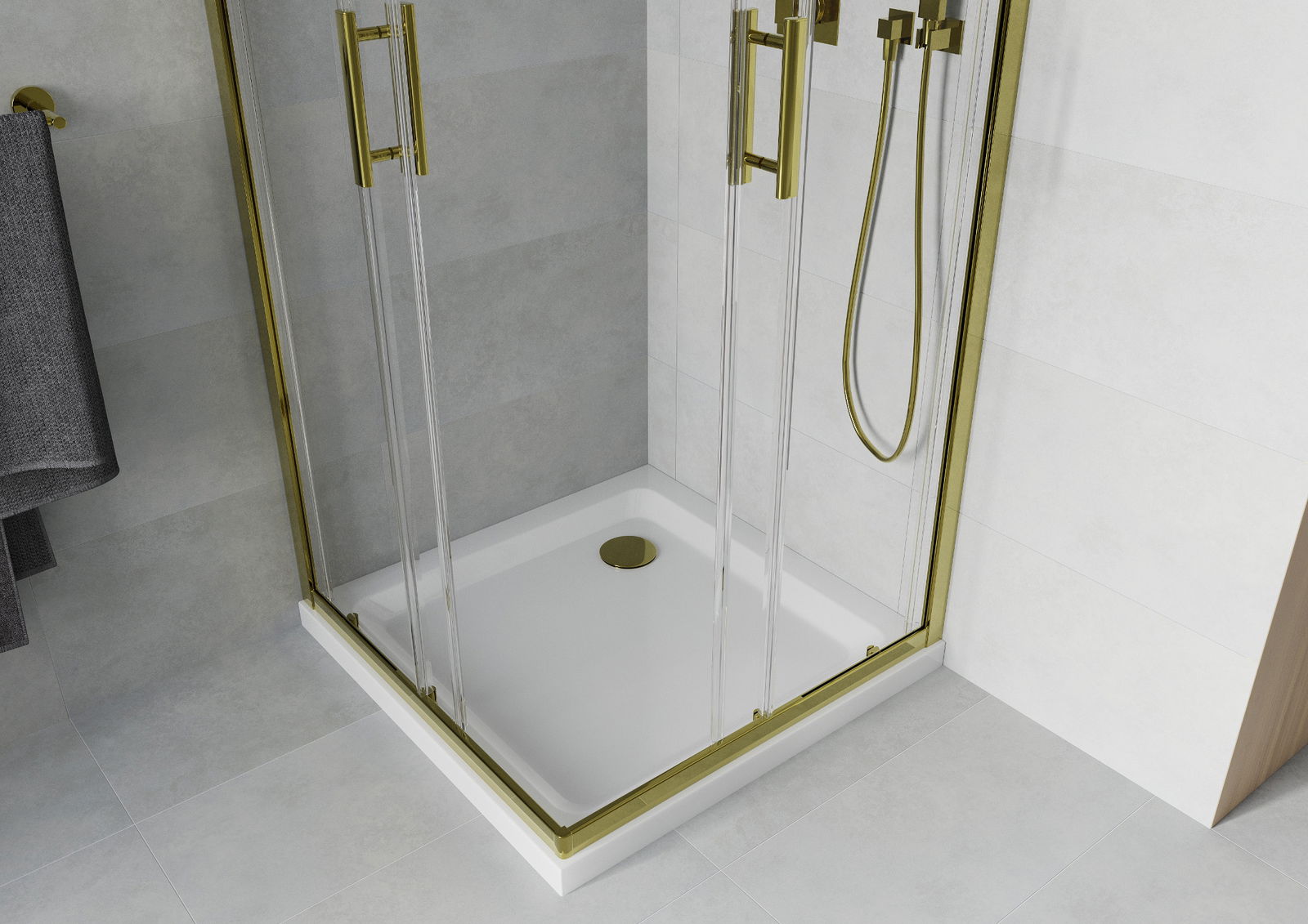 Mexen Rio square shower enclosure 70 x 70 cm, transparent, gold + Flat shower tray, white - 860-070-070-50-00-4010G