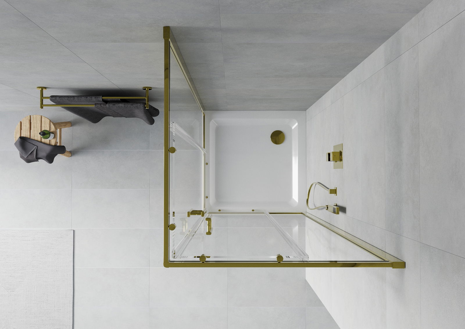 Mexen Rio square shower cabin 90 x 90 cm, transparent, gold + Flat tray, white - 860-090-090-50-00-4010G