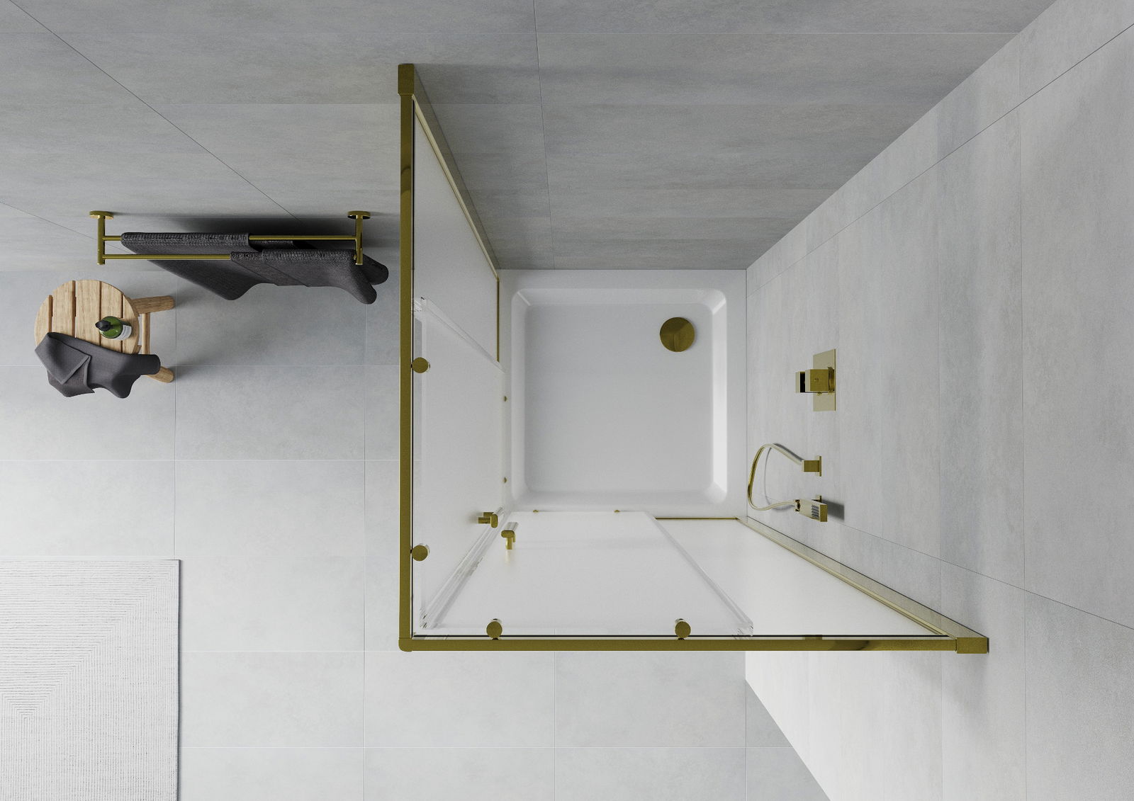 Mexen Rio square shower cabin 90 x 90 cm, frost, gold + Flat tray, white - 860-090-090-50-30-4010G