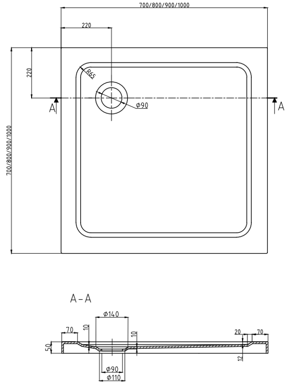 Technical data of the shower tray:
