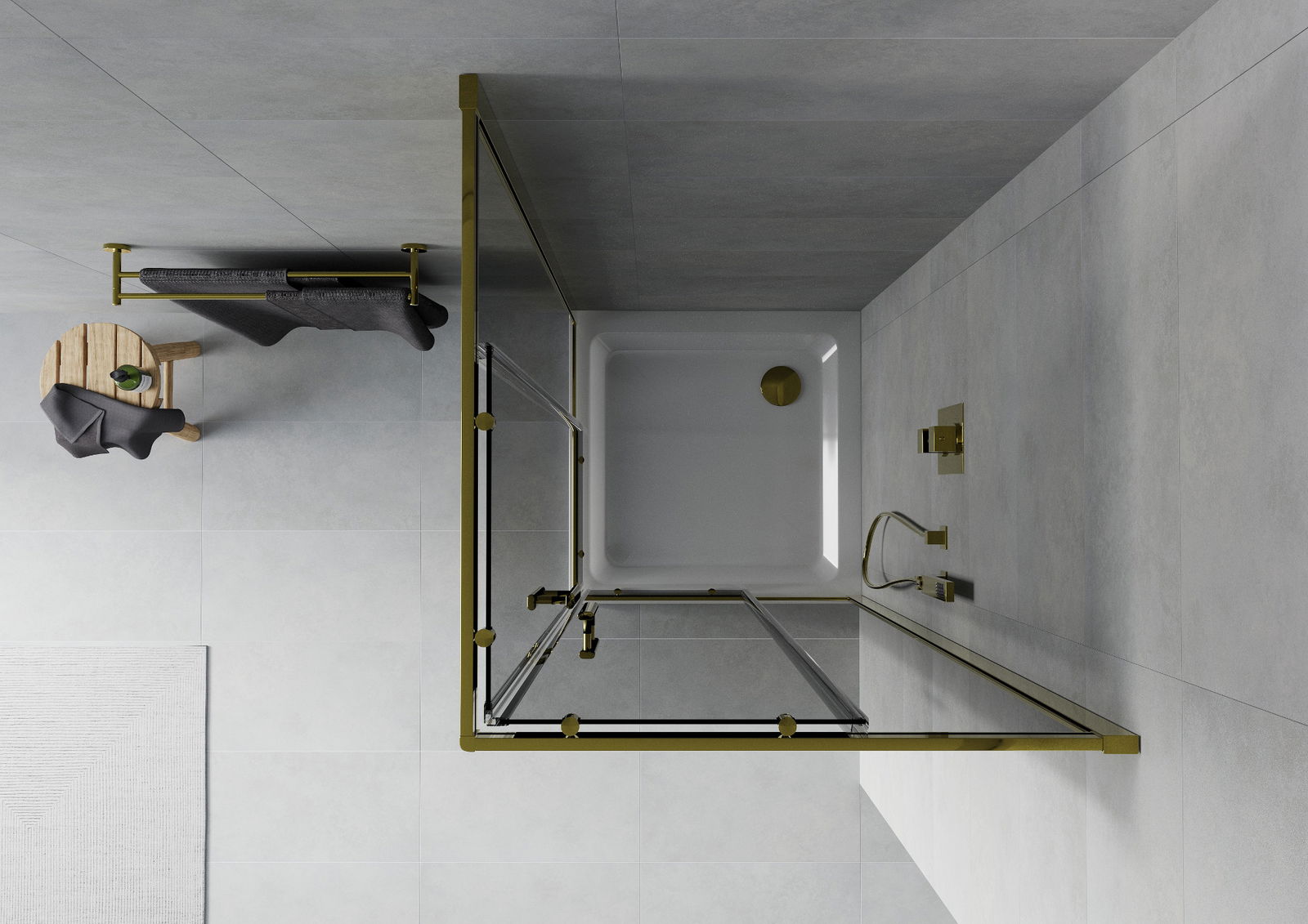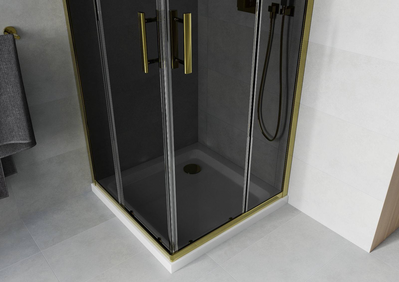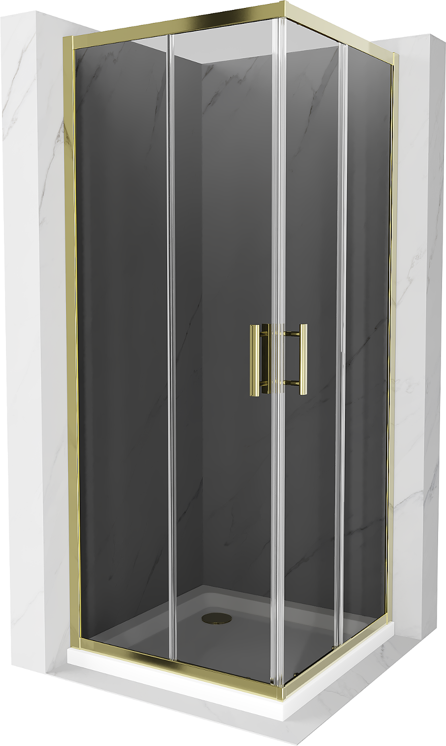 Mexen Rio square shower enclosure 90 x 90 cm, graphite, gold + Flat shower tray, white - 860-090-090-50-40-4010G