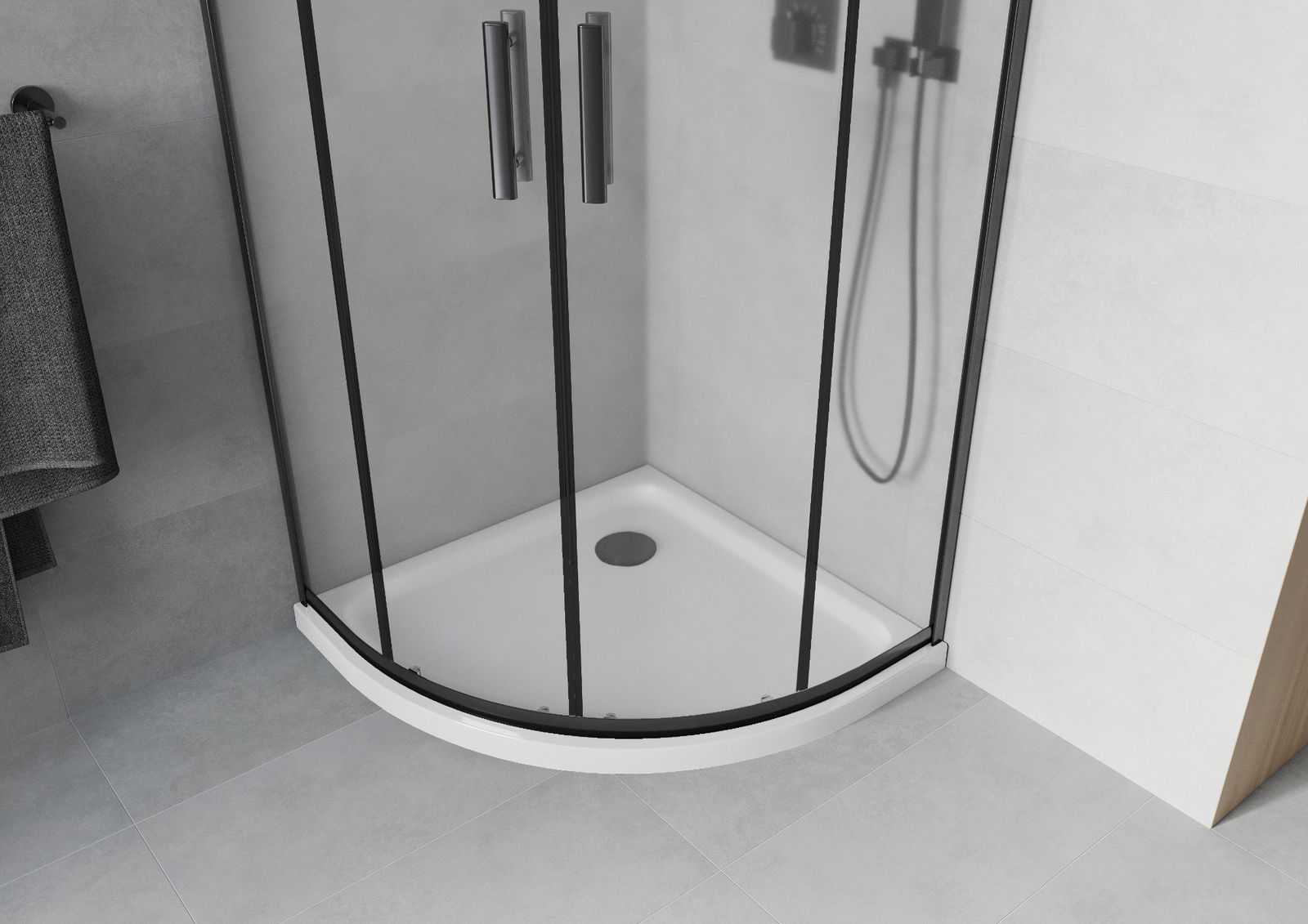The handy and comfortable handle is made of durable and resistant metal. The fashionable shape, combined with a finish matching the color of the profiles, gives the whole a modern and stylish look, emphasizing the aesthetics of any bathroom.
