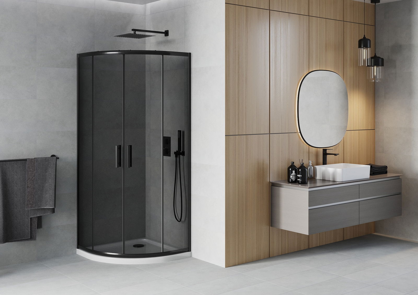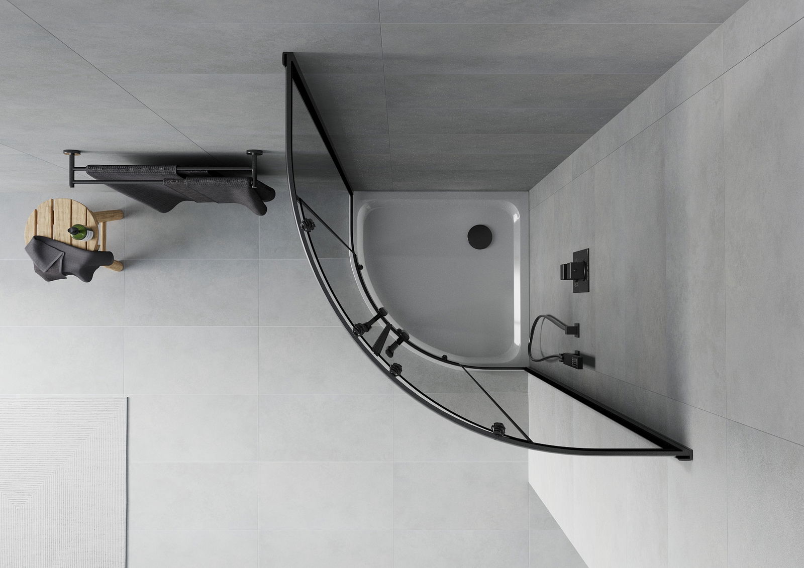 Mexen Rio semi-circular shower enclosure 90 x 90 cm, graphite, black + Flat tray, white - 863-090-090-70-40-4110B