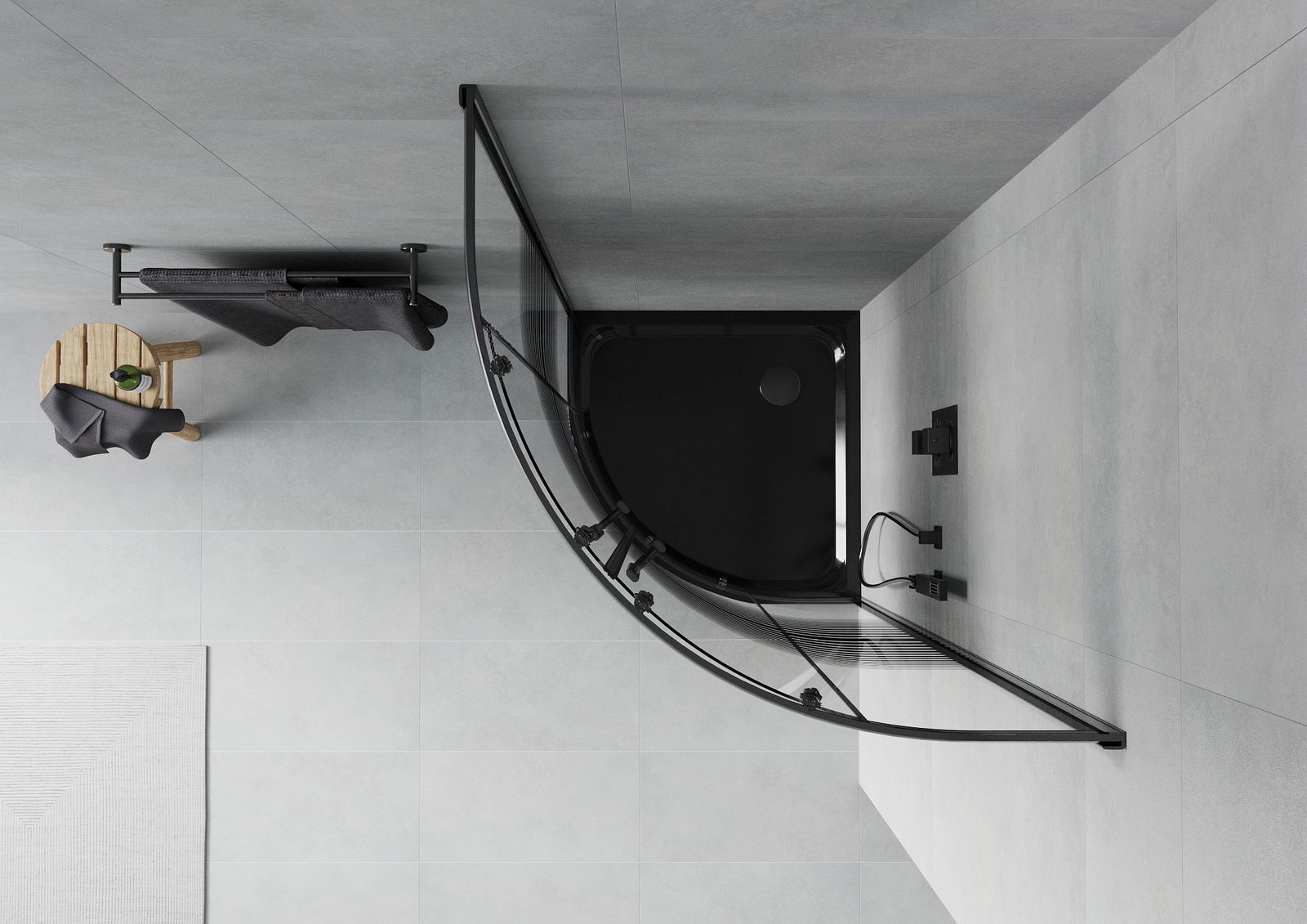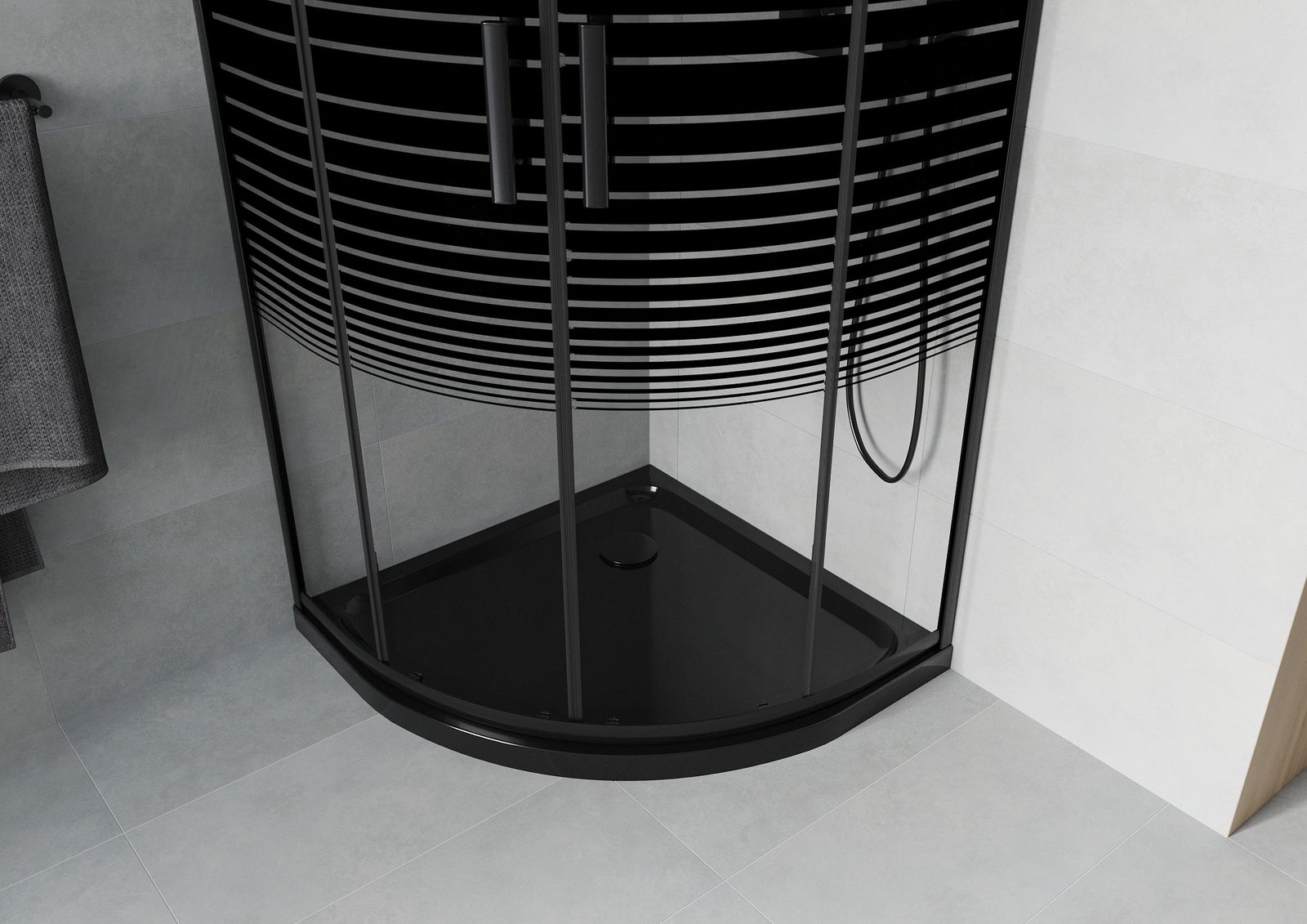 Mexen Rio semi-circular shower cabin 90 x 90 cm, black stripes, black + Flat tray, black - 863-090-090-70-20-4170B