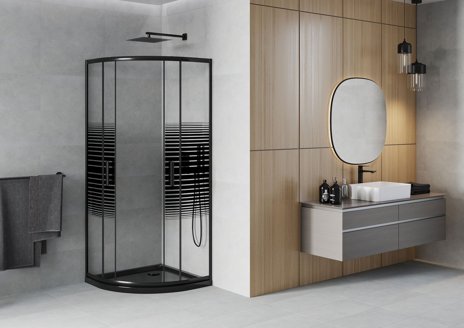 A handy and comfortable handle made from durable and resistant metal. Its trendy shape combined with a finish matched to the colour of the profiles gives the whole a modern and stylish look, highlighting the aesthetics of every bathroom.