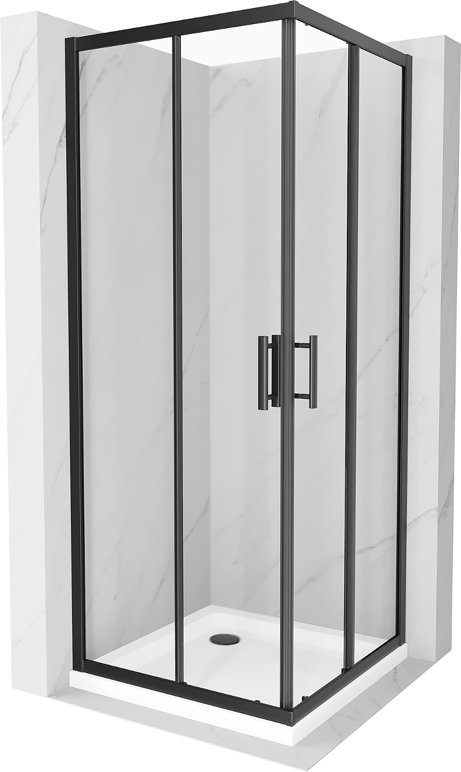 Mexen Rio 80x80 cm Square Shower Enclosure, Transparent, Black + Flat Tray, White - 860-080-080-70-00-4010B