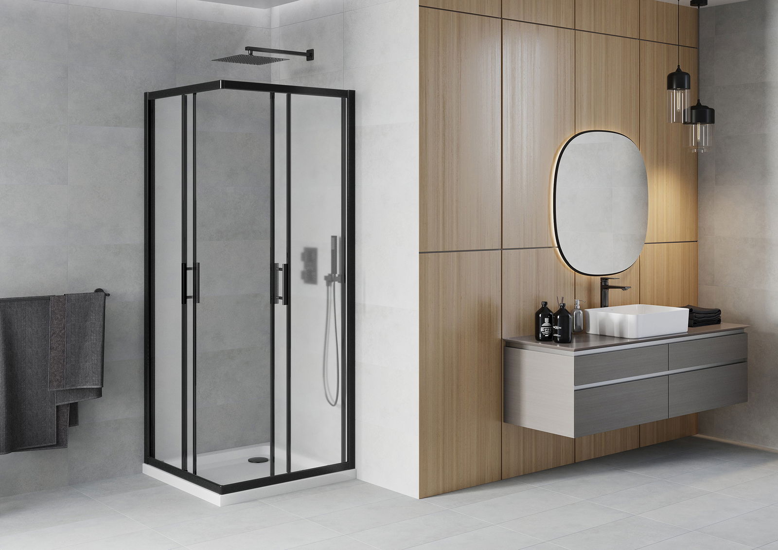 Sliding doors move around special guides and do not require additional space to open them, so they will work in smaller bathrooms. Thanks to double rollers made of durable plastic, their movement is fluid.