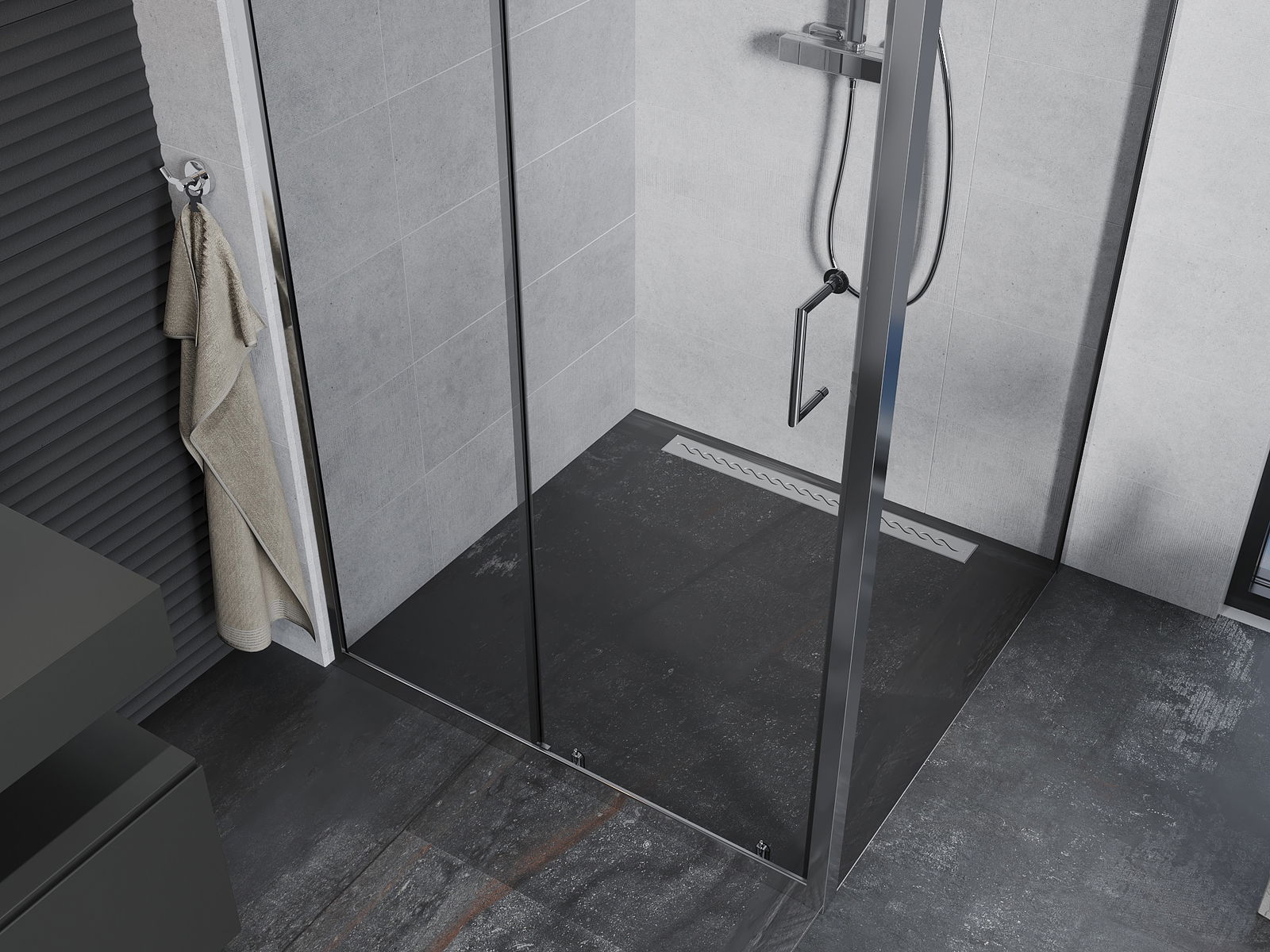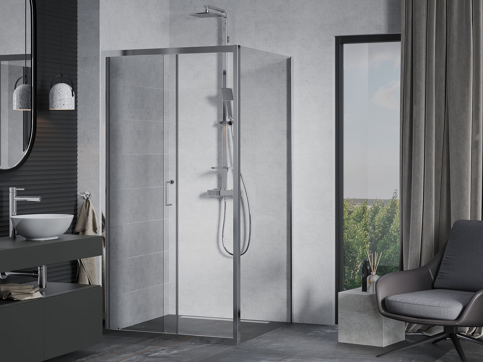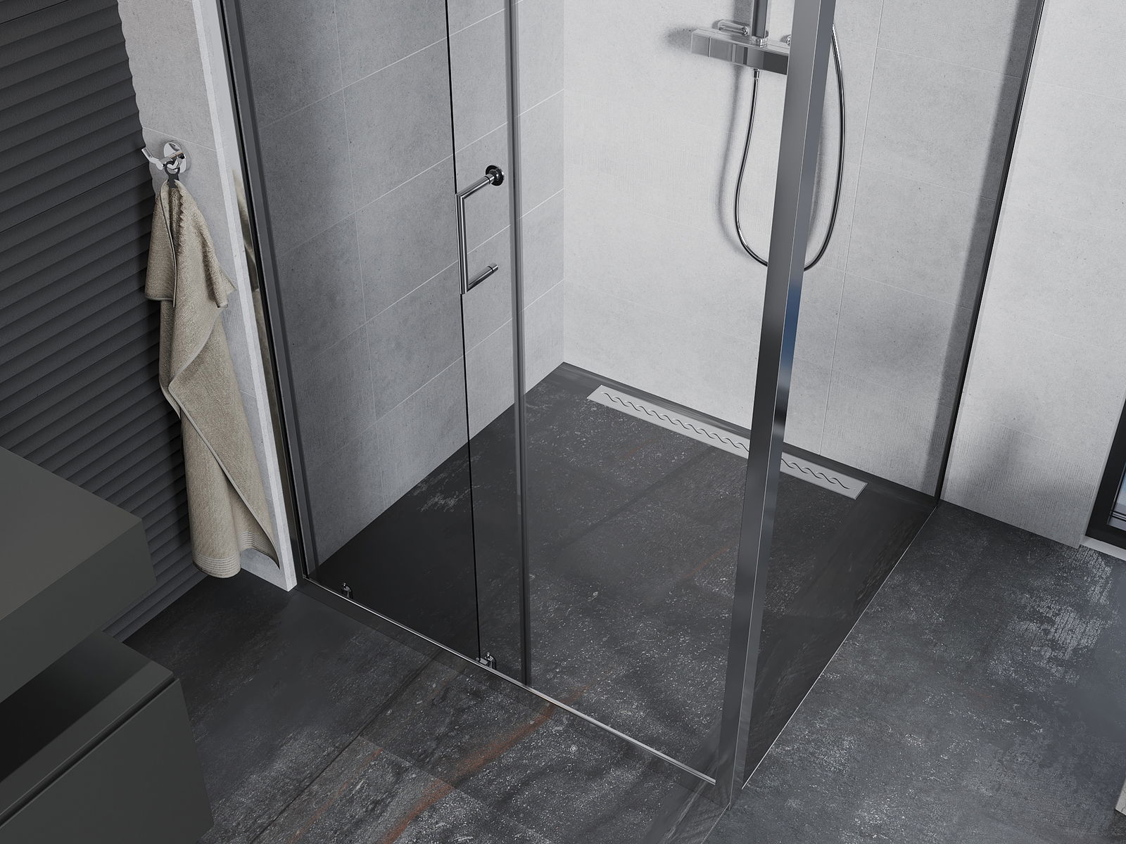 The handy and comfortable handle is made of durable and resistant metal. The fashionable shape, combined with a finish matching the color of the profiles, gives the whole a modern and stylish look, emphasizing the aesthetics of any bathroom.