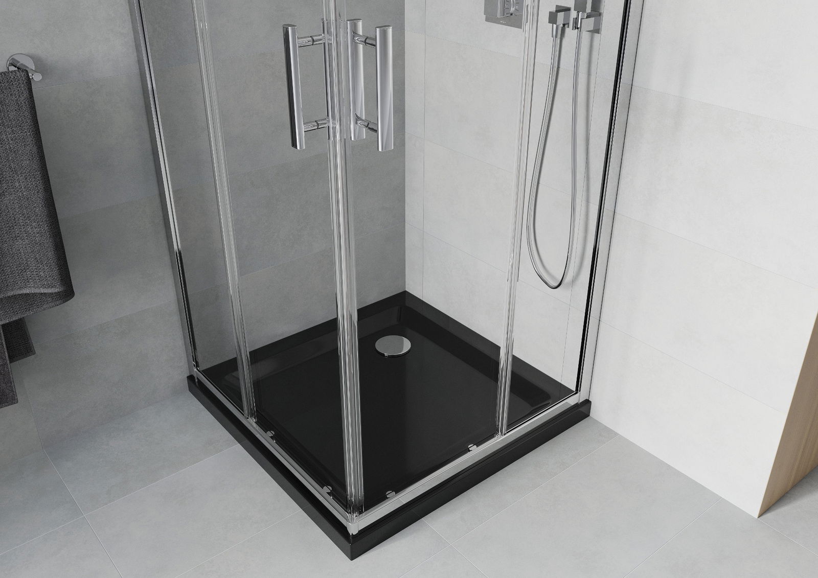The handy and comfortable handle is made of durable and resistant metal. The fashionable shape, combined with a finish matching the color of the profiles, gives the whole a modern and stylish look, emphasizing the aesthetics of any bathroom.