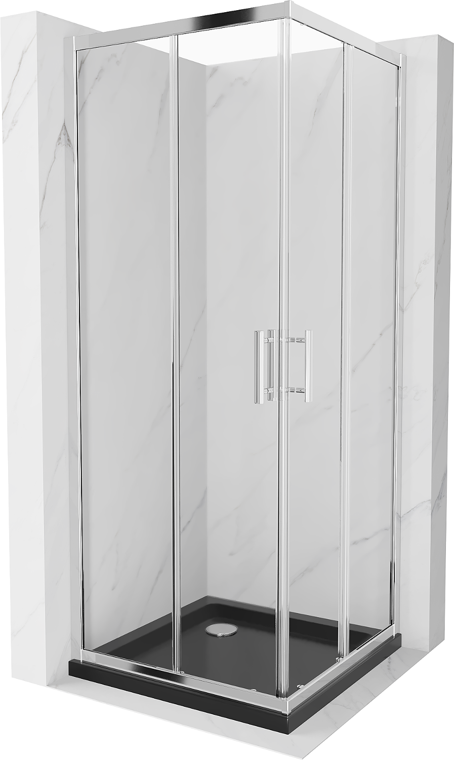 Mexen Rio square shower enclosure 70 x 70 cm, transparent, chrome + Flat tray, black - 860-070-070-01-00-4070