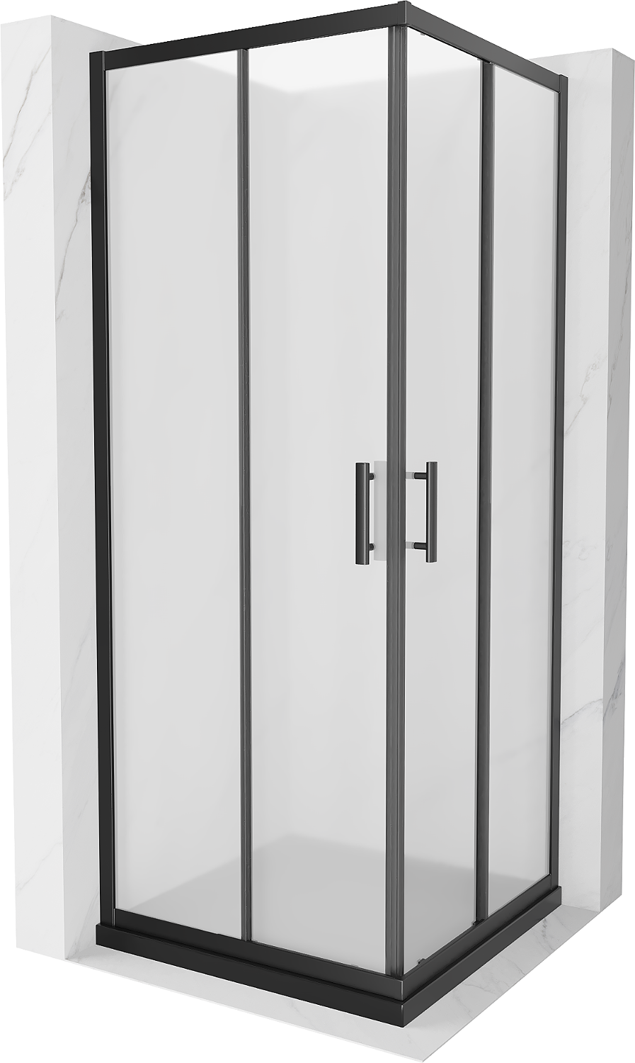 Mexen Rio Square Shower Enclosure 70 x 70 cm, Frosted, Black + Flat Tray, Black - 860-070-070-70-30-4070B