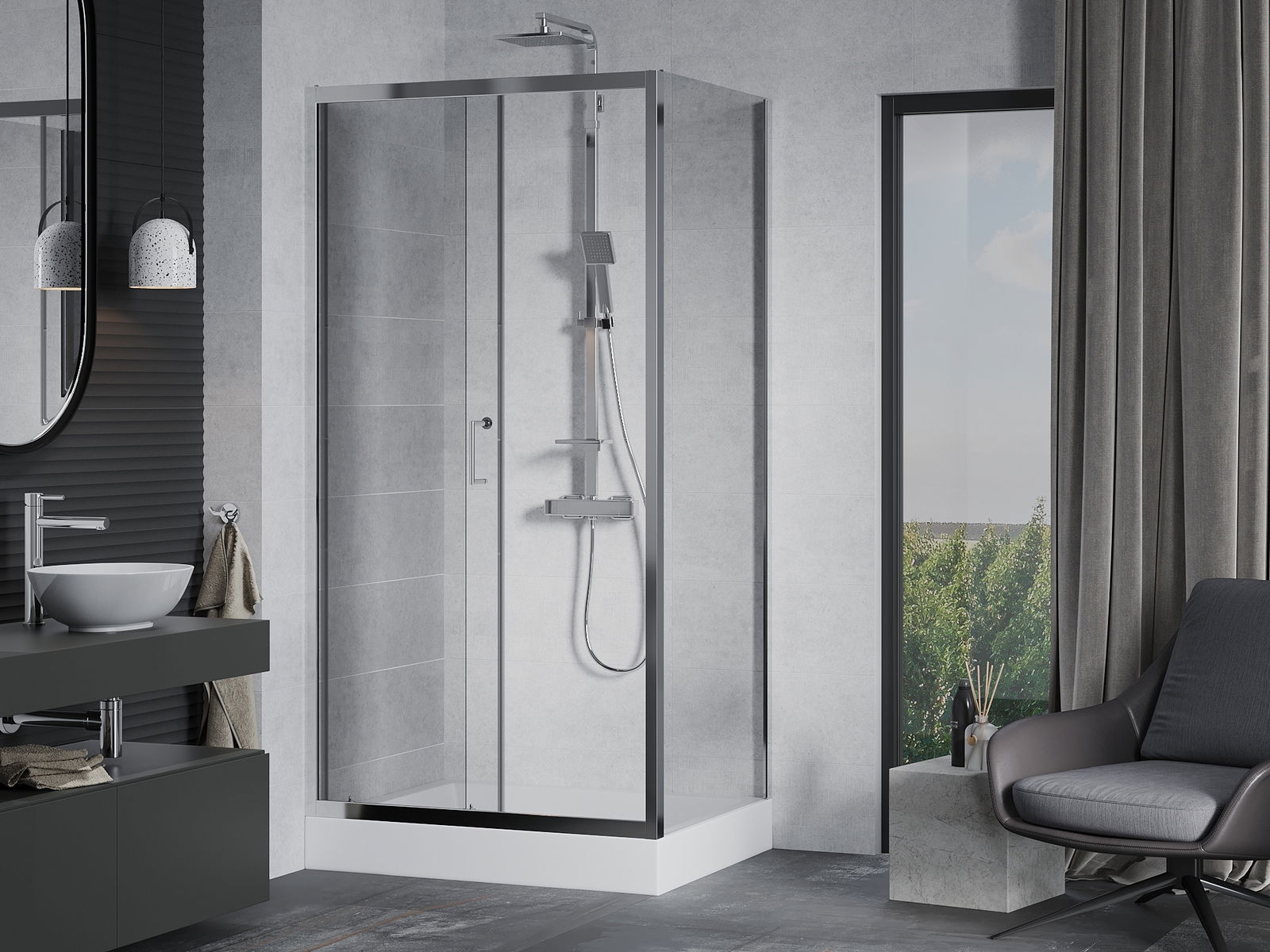 Mexen Apia sliding shower enclosure 120 x 80 cm, transparent, chrome + Rio shower tray - 840-120-080-01-00-4510