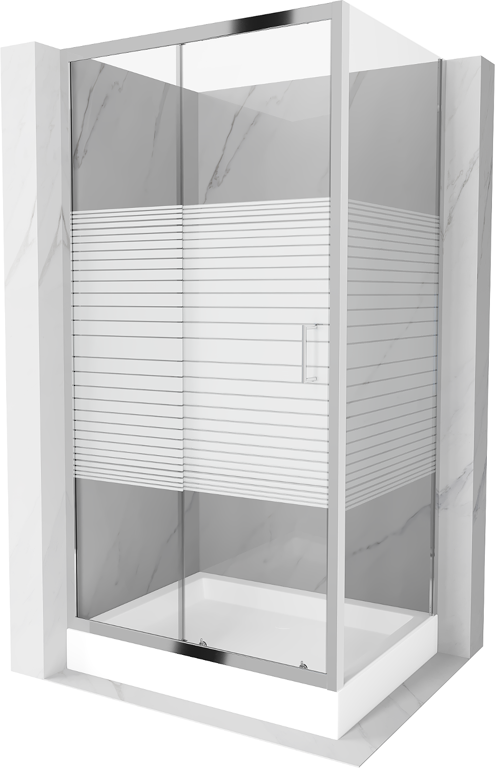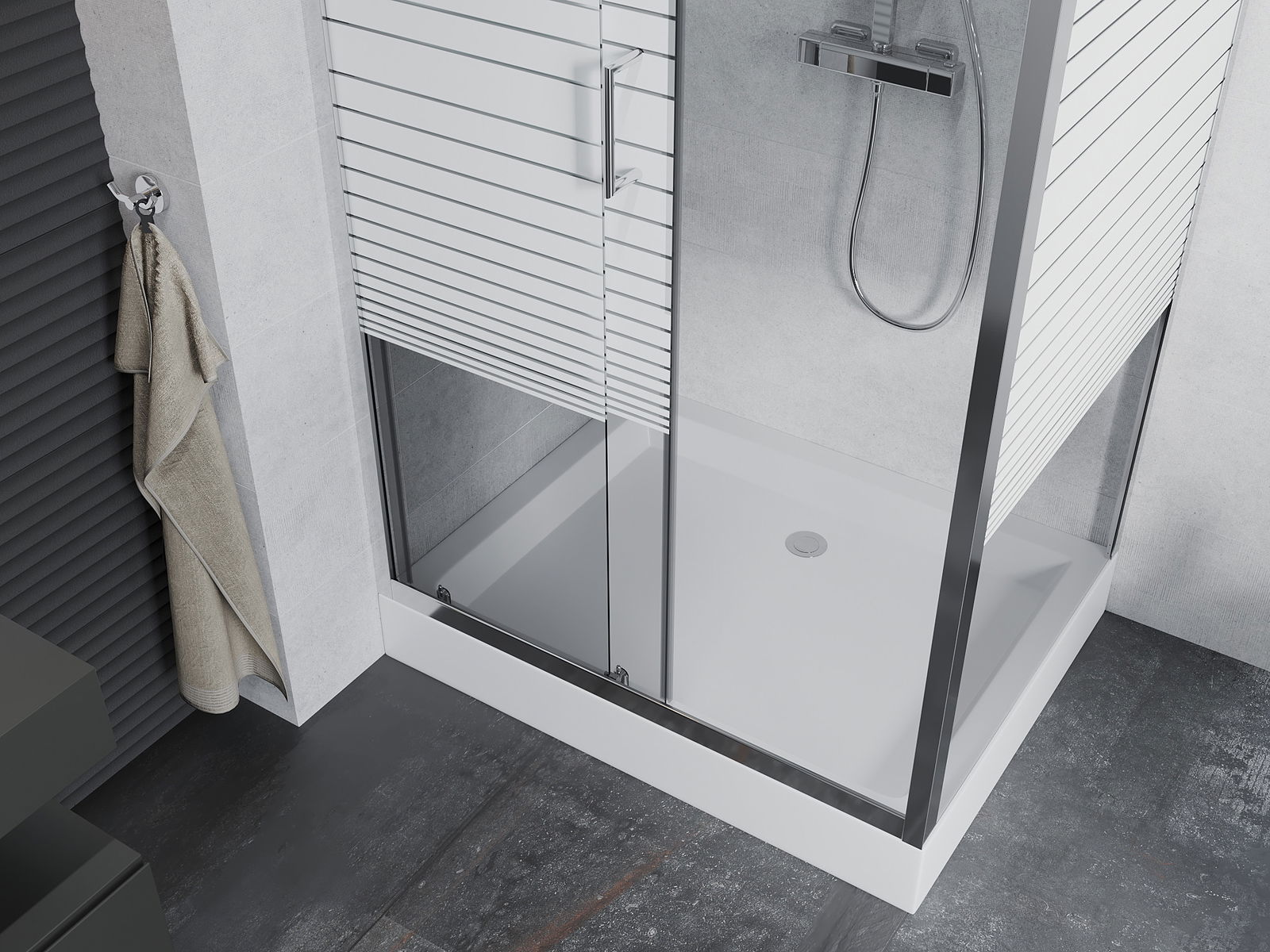 Mexen Apia sliding shower cabin 120 x 80 cm, white stripes, chrome + Rio shower tray - 840-120-080-01-20-4510