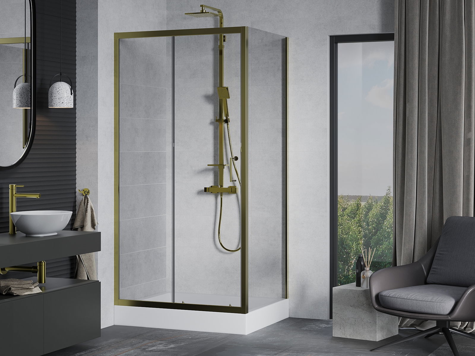 Mexen Apia sliding shower enclosure 100 x 80 cm, transparent, gold + Rio tray - 840-100-080-50-00-4510