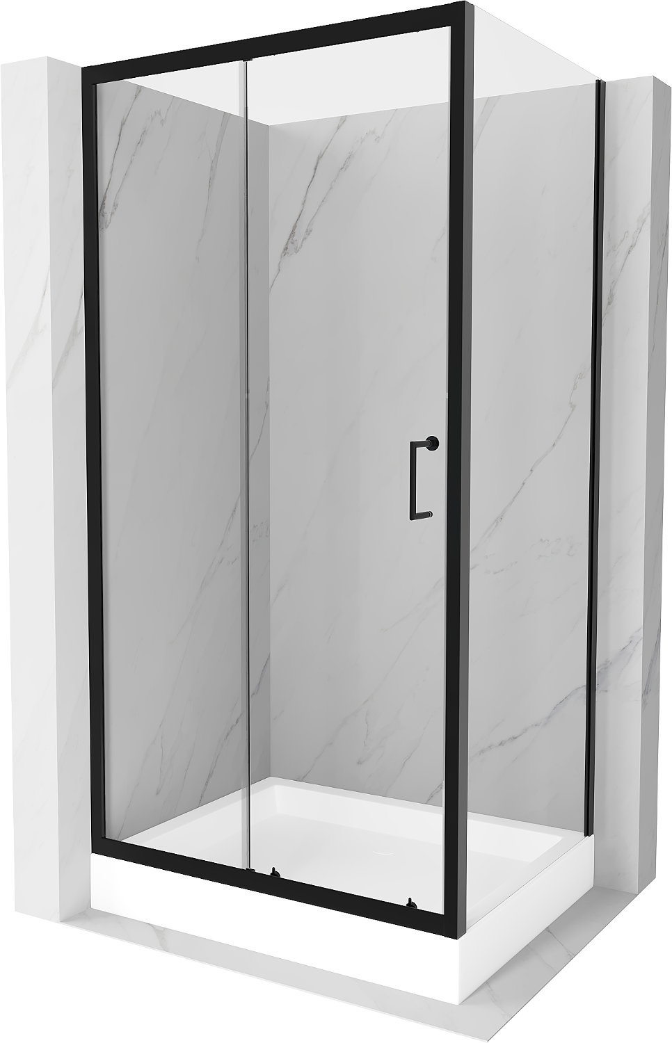 Mexen Apia Sliding Shower Enclosure 120 x 80 cm, Transparent, Black + Rio Shower Tray - 840-120-080-70-00-4510