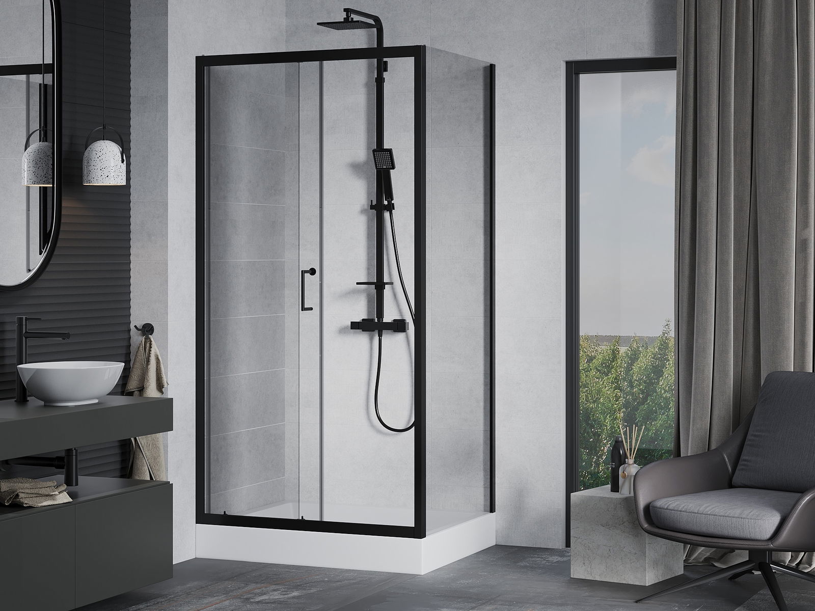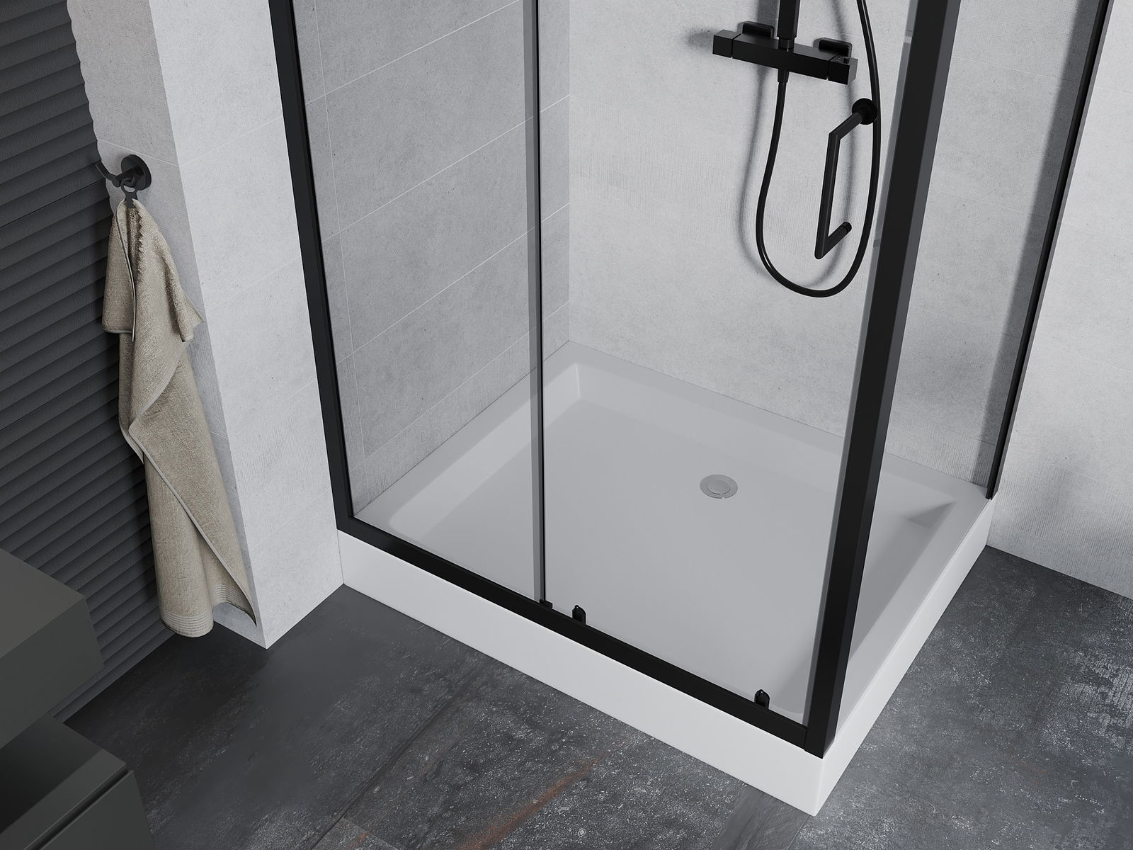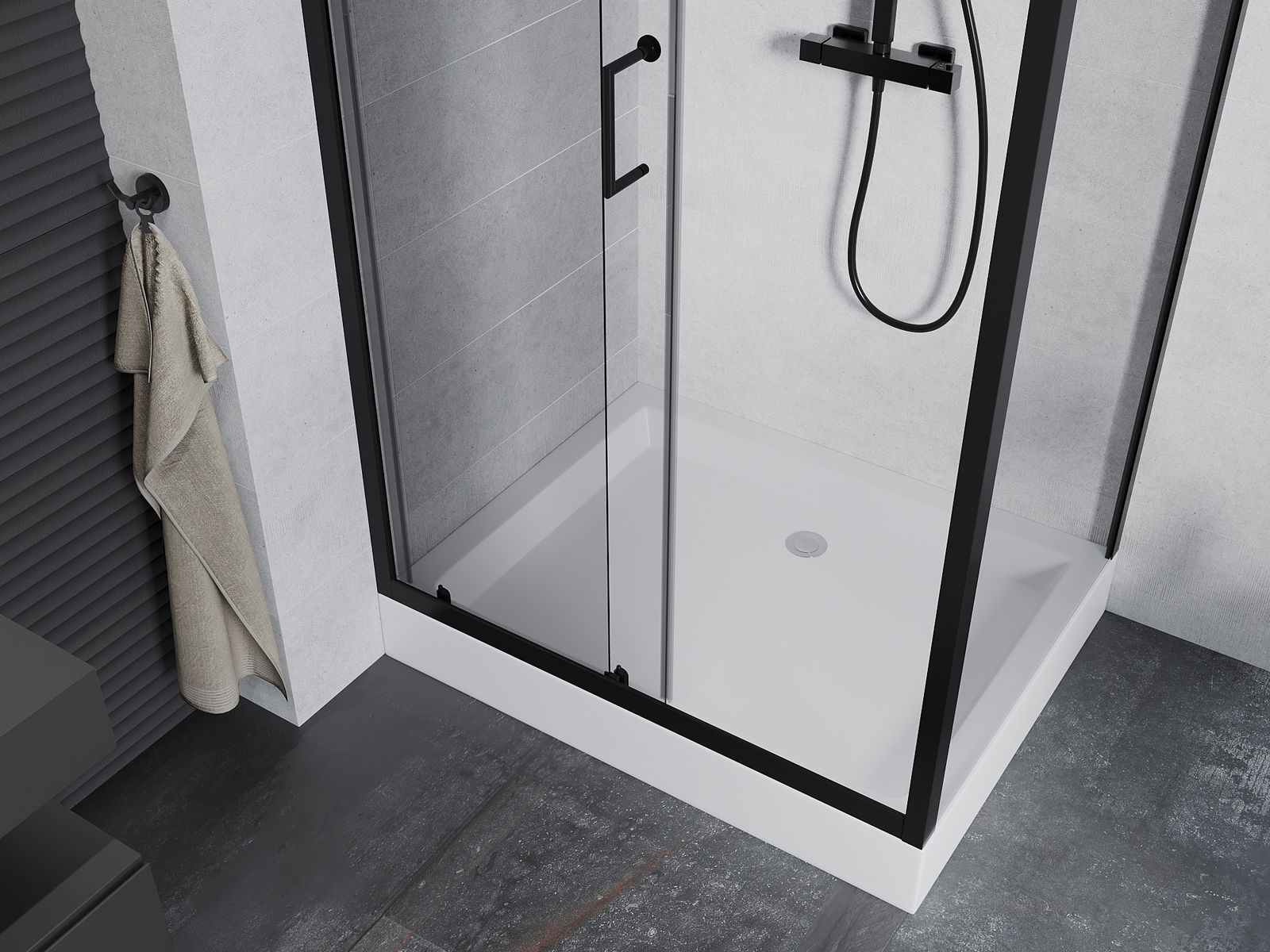 The handy and comfortable handle is made of durable and resistant metal. The fashionable shape, combined with a finish matching the color of the profiles, gives the whole a modern and stylish look, emphasizing the aesthetics of any bathroom.