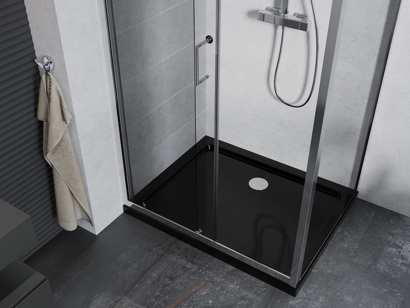Mexen Apia sliding shower enclosure 120 x 100 cm, transparent, chrome + Flat tray, black - 840-120-100-01-00-4070