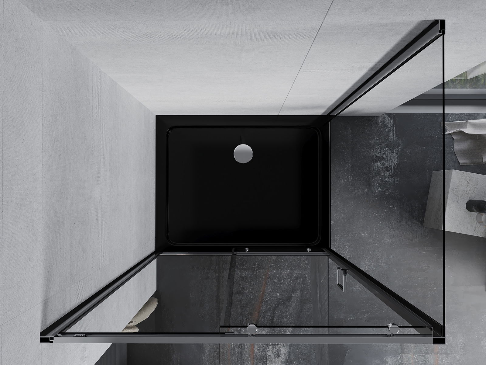Mexen Apia Sliding Shower Enclosure 130 x 80 cm, Transparent, Chrome + Flat Tray, Black - 840-130-080-01-00-4070