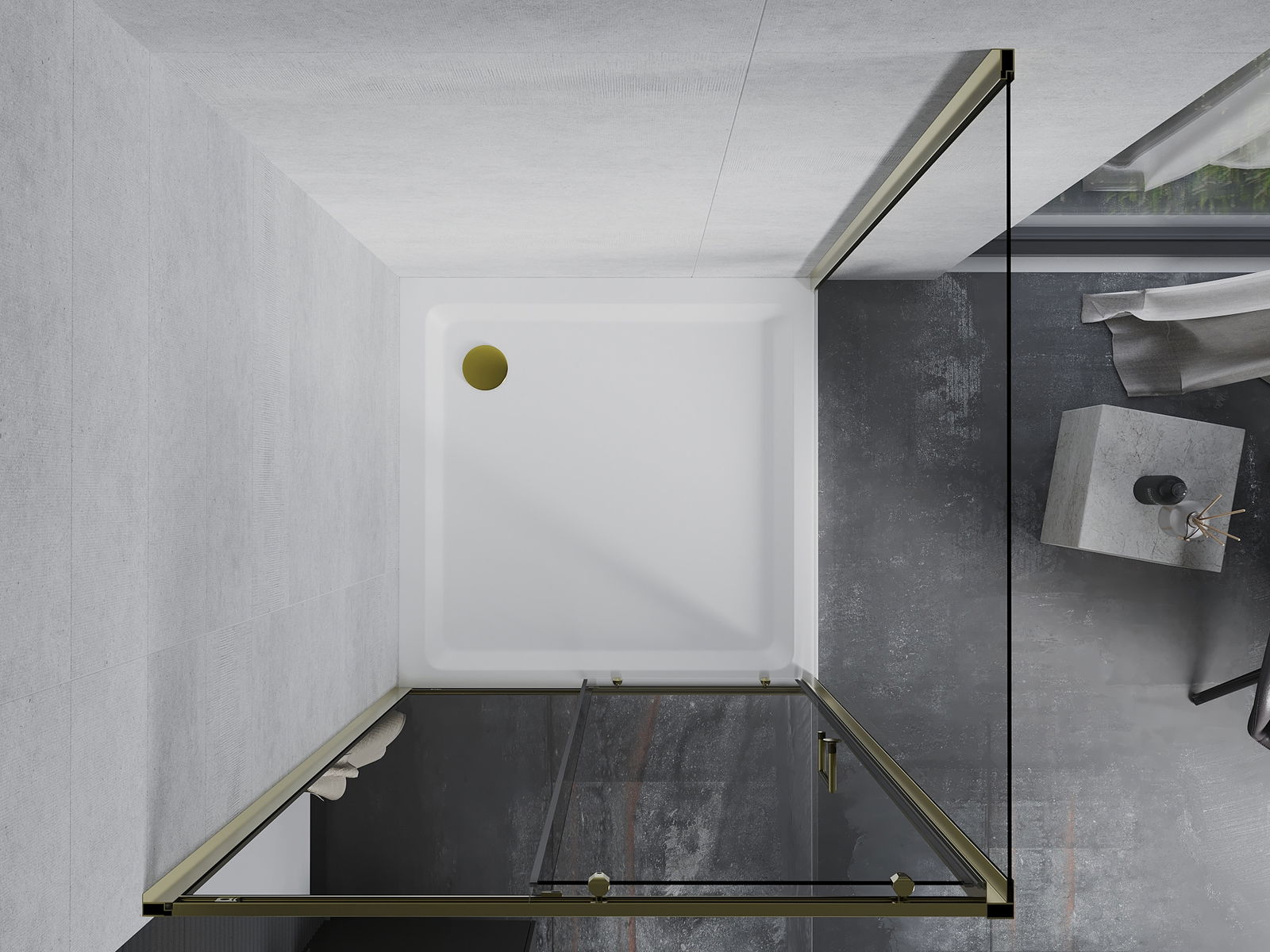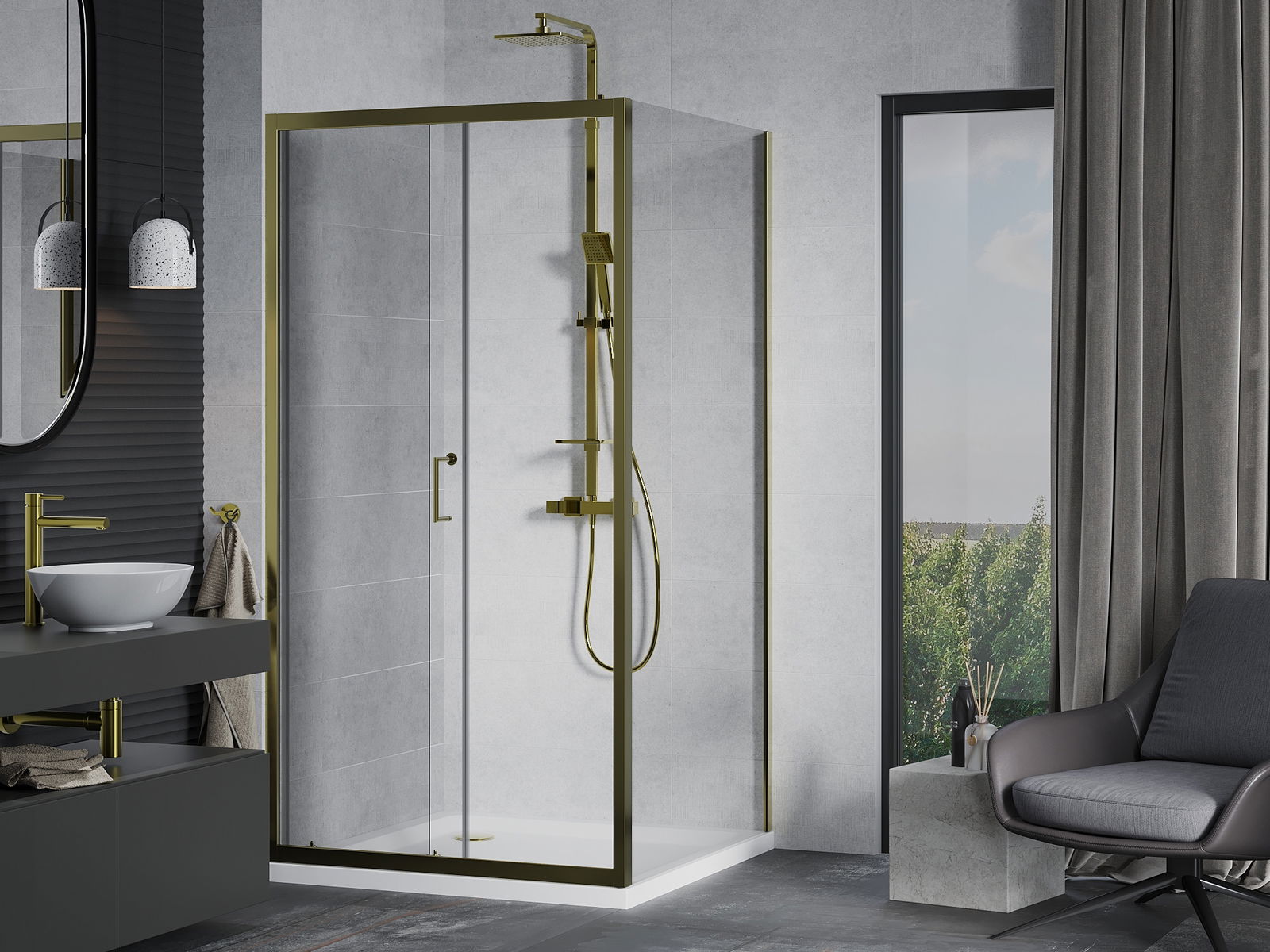 Mexen Apia sliding shower enclosure 100 x 100 cm, transparent, gold + Flat tray, white - 840-100-100-50-00-4010G